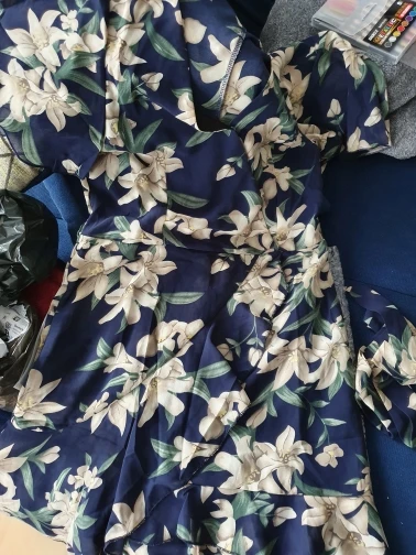 Платье не такое яркое,как на фото. Скорее чёрное. Ткань норм, но всё же ожидала более качественной вещи. Ношу размер 42, заказала s,но оно мне маловато, носить не буду. А у дочери тоже размер 42-ей оно в размер, но она не носит такой стиль. В общем покупкой не довольна, ожидала лучшего.