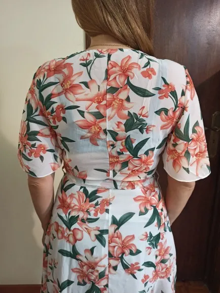 Платье точно такое же! Мне очень понравилось! Размер был идеальным для меня, но если вы большой пузырь, я рекомендую еще один размер, потому что ткань не растягивается.
