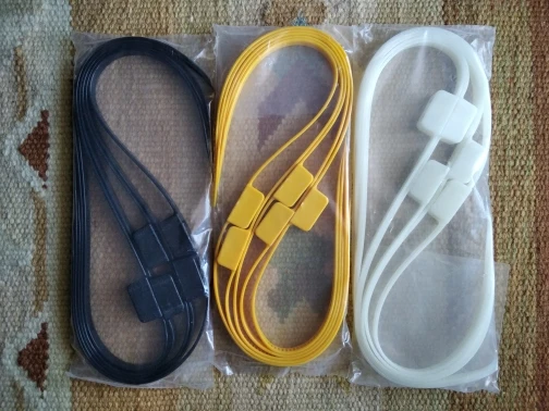 Упаковка: 5 шт., 4 цвета, черный белый желтый оливковый Спецификация: Длина: 27,5 дюйма или 700 мм Ширина: 0,47 дюйма/12 мм Толщина: 0,04 дюйма/1 мм Вес посылка кой: 0.35 фунтов/160 г