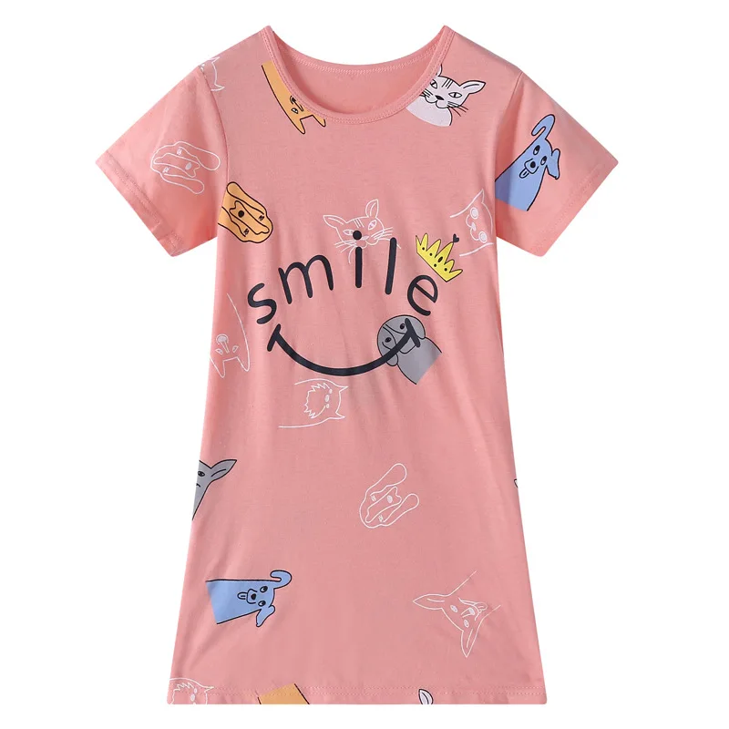 Хлопковая ночная рубашка для девочек, летнее платье с короткими рук...