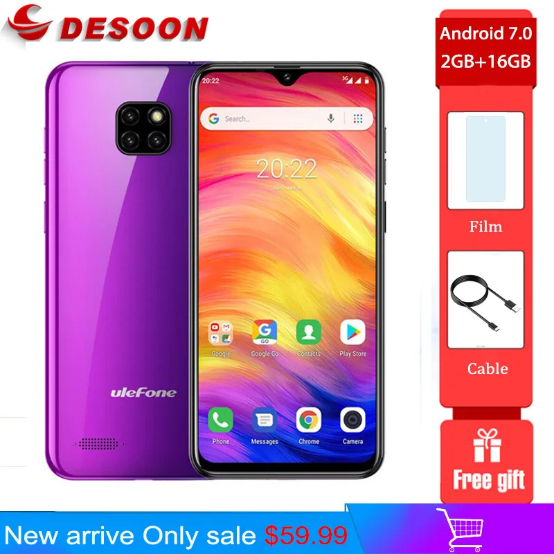 Ulefone Note 7 смартфон с 5,5-дюймовым дисплеем, четырёхъядерным процессором, 6,1 мАч, 16 ГБ, Android 3500