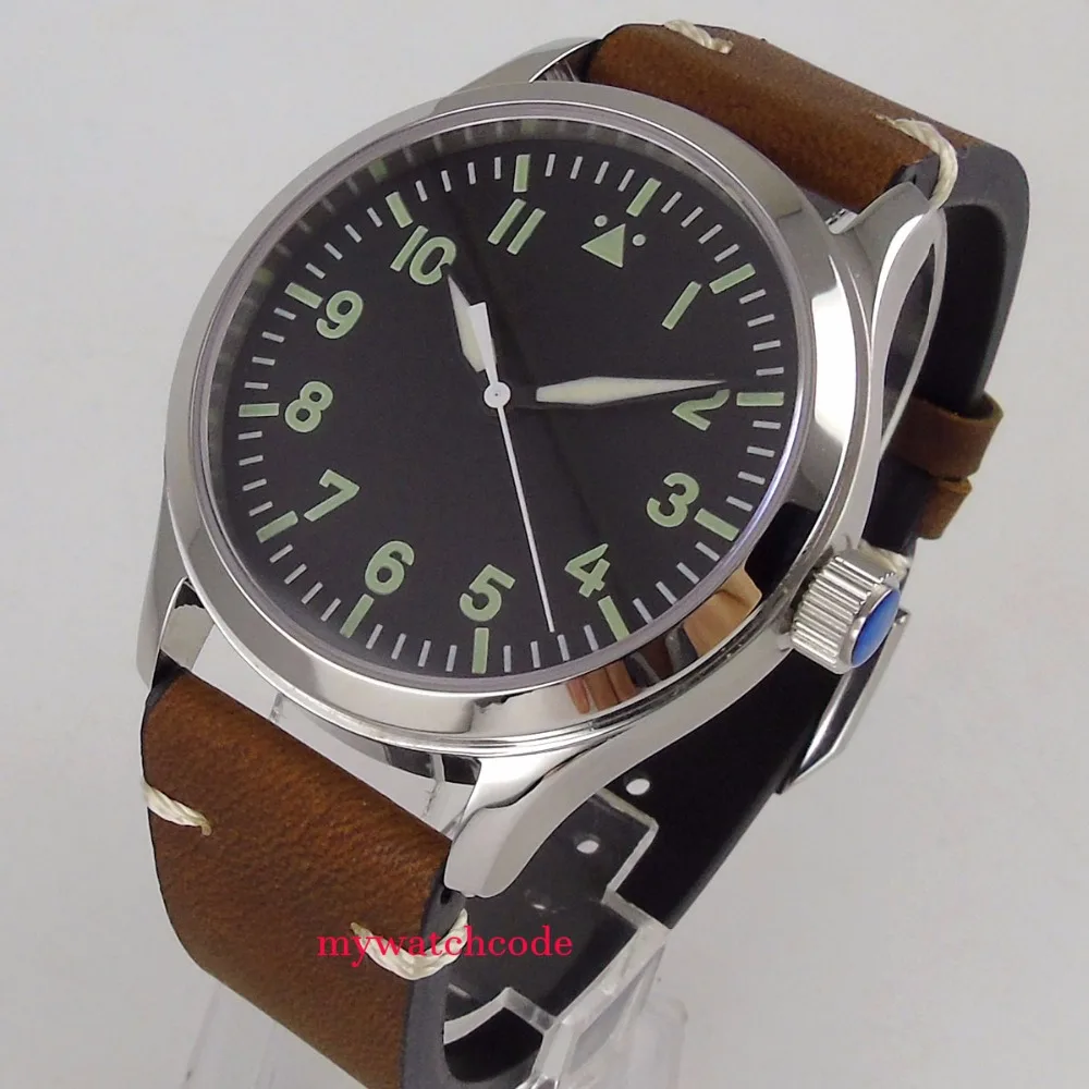Часы мужские corgoue с черным стерильным циферблатом, светящиеся знаки метки, сапфировое стекло, Sea-gull Miyota 8215, автоматические, 42 мм, C127