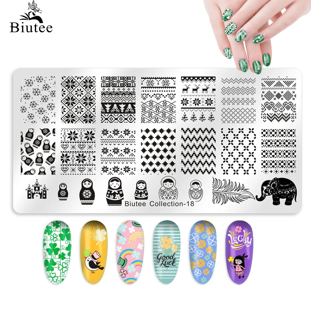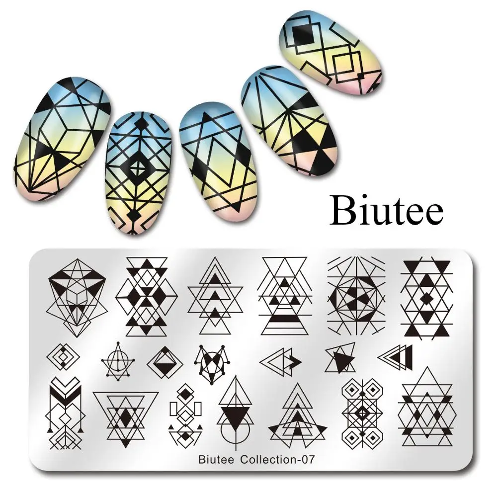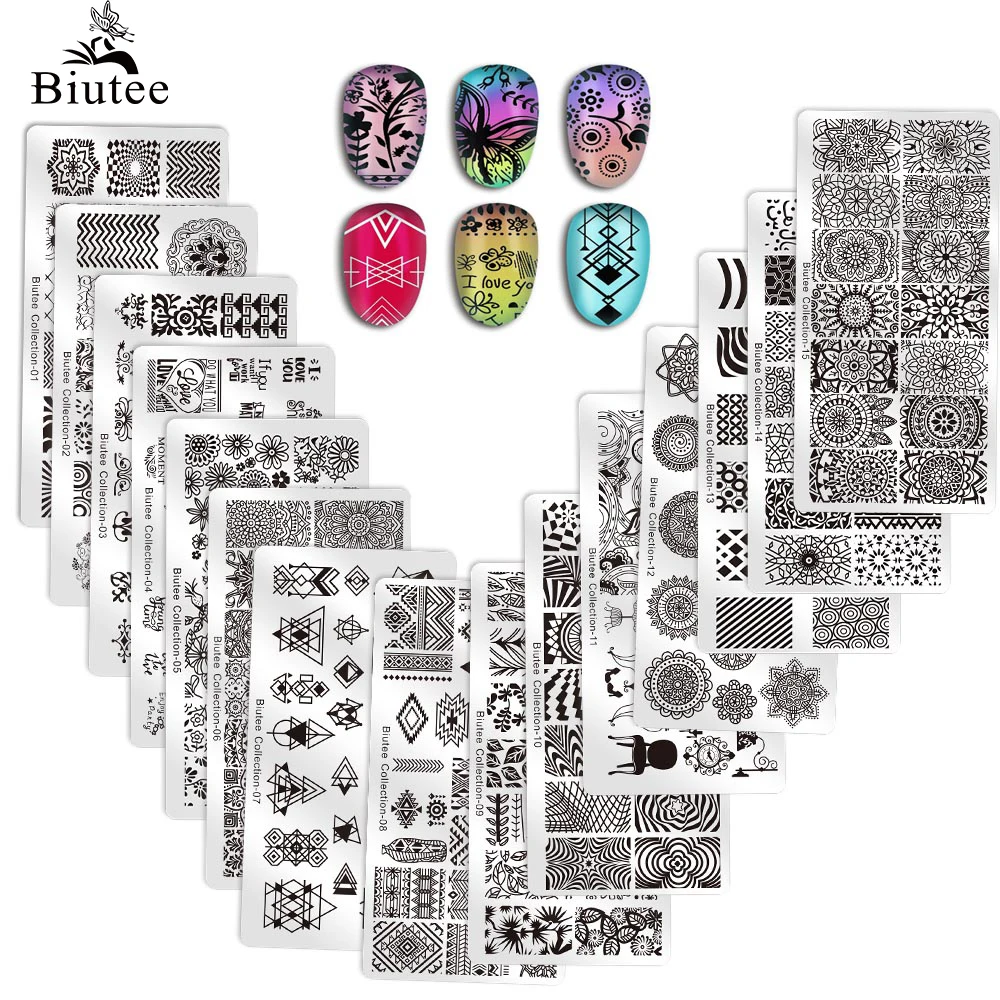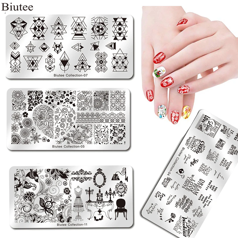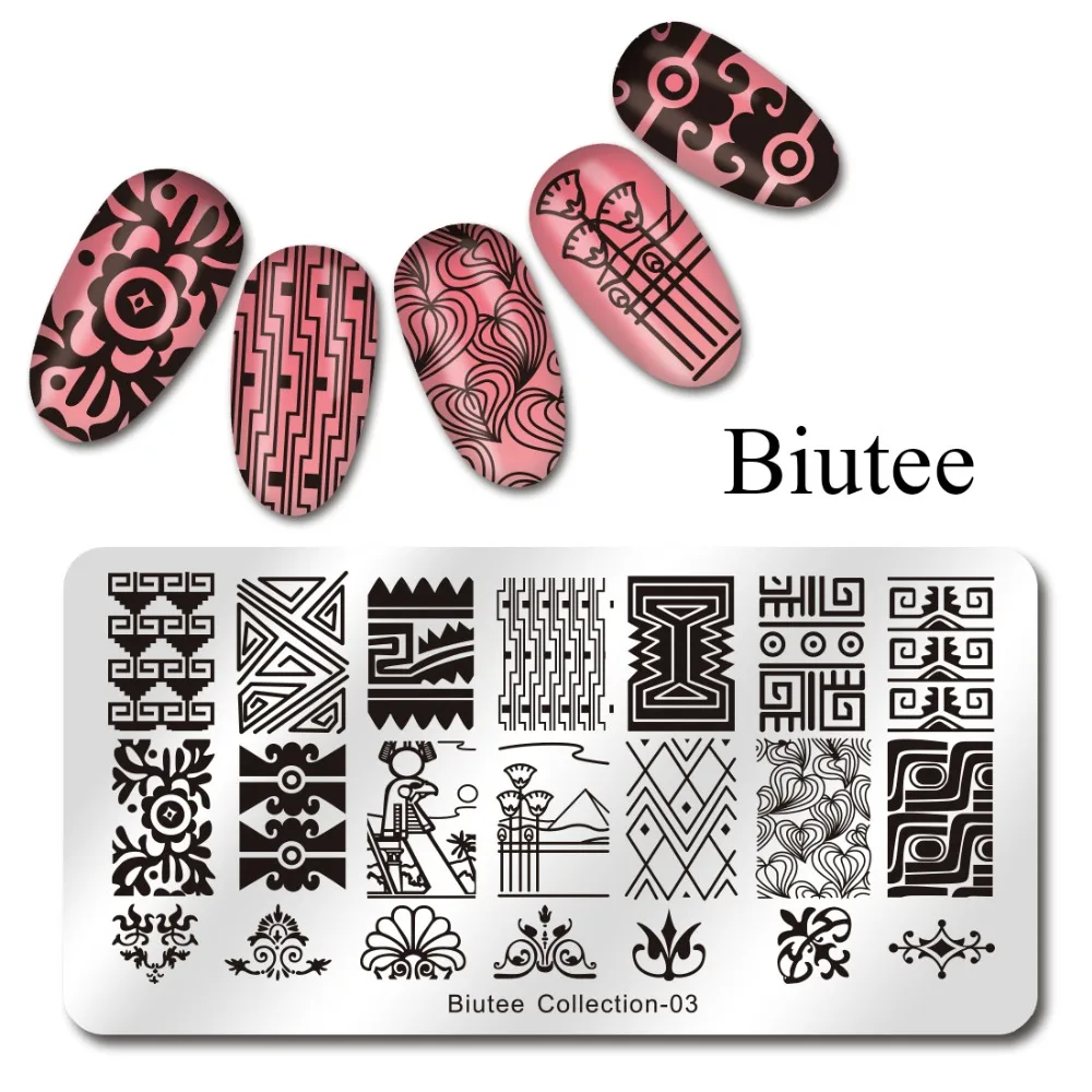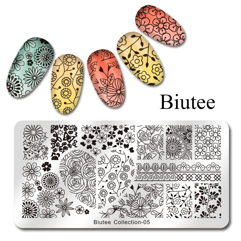 Пластины для штамповки ногтей Biutee, скребок для ногтей, цветы, геометрические узоры, для самостоятельного дизайна ногтей, пластина для маникюра