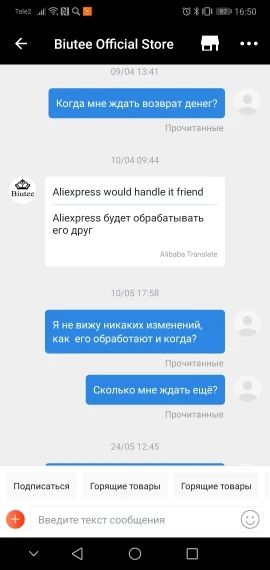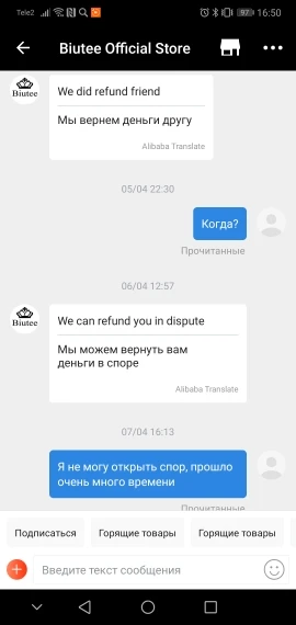 В декабре прошло года у этого продавца я заказала гель лаки для стемпинга, доставка которых стоила 400 рублей, сами гели 180 рублей. По прошествии 4 месяцев гели так и не пришли, спор я открывала, продавец предложил закрыть спор, подождать пару недель и сходить на почту, в следствии чего спор я уже открыть не могла и заказ попал в статус завершенных. Сколько бы я не писала продавцу он кормил меня завтраками о возврате средств. В итоге было решено сделать новый заказ, в который продавец пообещал вложить и предыдущий. И вот спустя 3 месяца я так ничего и не получила, а продавец вновь предложил закрыть спор и ещё подождать. Не уверена что он вообще что либо отправлял. Ведь когда он спор закрывает, статус заказа выполнен, а через 2 недели сделать ничего уже нельзя и служба поддержки алиэкспресс тоже ничем не поможет. В этот раз алиэкспресс закрыл спор и вернул деньги, но только за новый заказ. Очень расстроила вся эта ситуация.