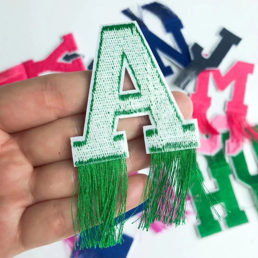 Цветная нашивка с буквами и кисточками, алфавитная вышивка, аппликация для футболки, Пришивные аксессуары для одежды, украшение для одежды, именные нашивки