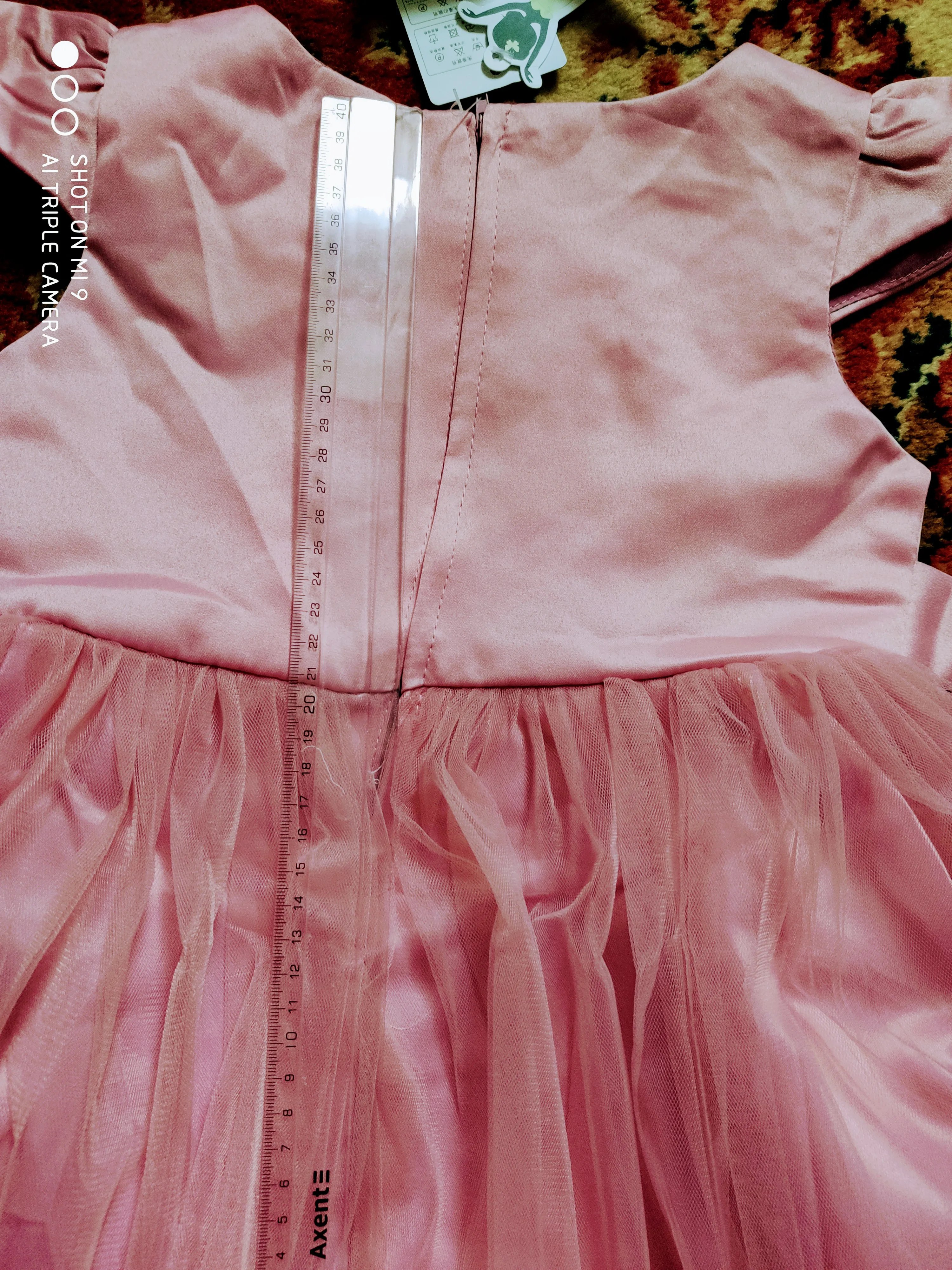 Мне платье не понравилось, странный фасон. На пятилетие дочи заказала 6т, рост 113, вес 22. Вроде всё по размеру, но вот талия уж очень высоко. Не просто как завышенная, а как будто платье мало. Есть нитки, в том числе некрасиво торчащие на узоре впереди (под сеткой), фиг уберёшь. Узор этот перекрывает линию талии сверху и создаёт объём, хотя доча не пухленькая. Фото в другом платье - для сравнения, показать объем, создаваемый платьем.