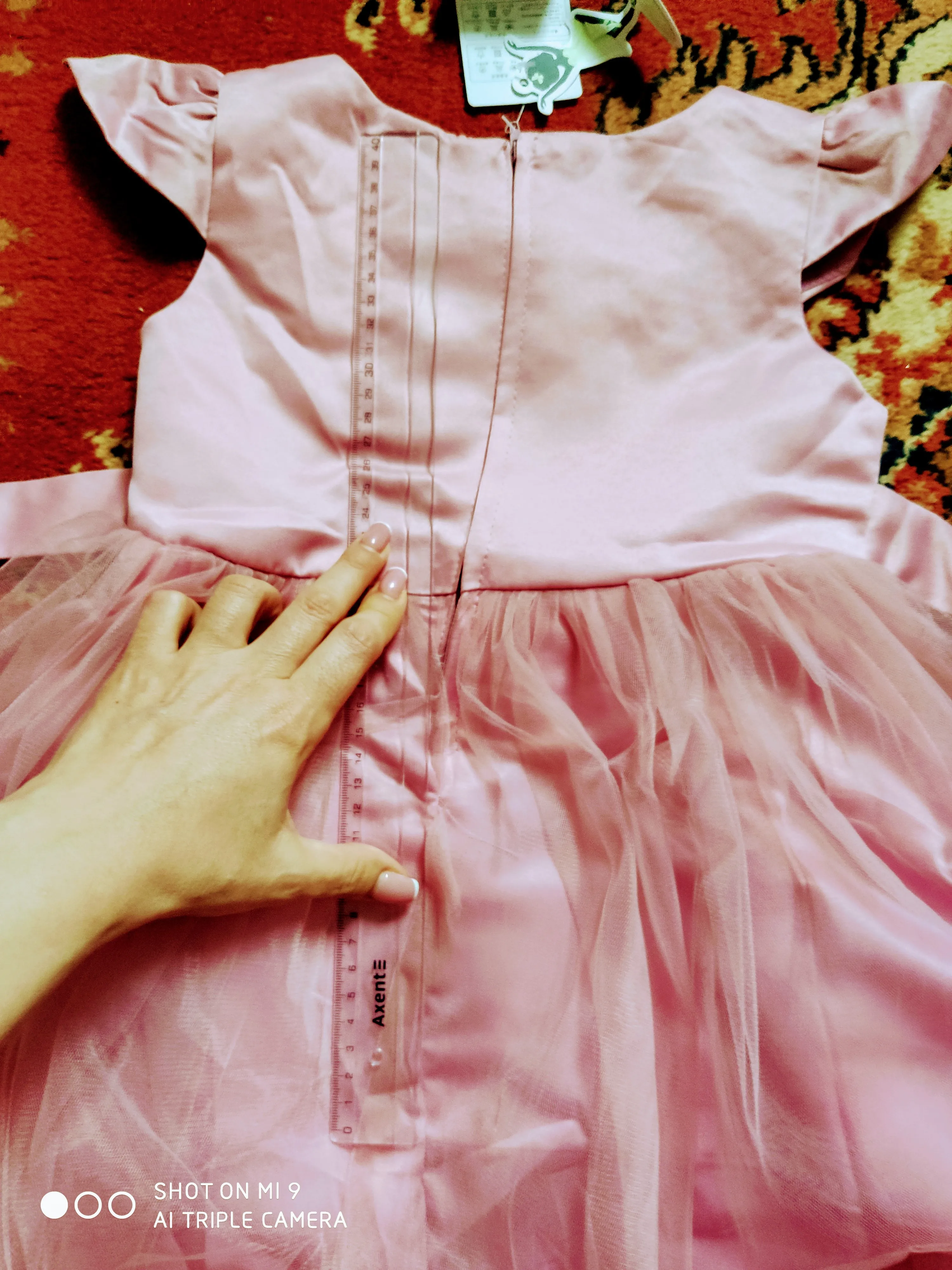 платье очень красивое. на дочку 4,5 года взяла размер 6, потому что девочка высокая ( 120 рост) и вес 21 кг. платье на фото на подьюбник меряли, но платье не глажено (меряли сразу как получили). один минус несколько торчащих ниток на подоле и в одном месте не прострочено, поэтомв нужно отремонтировать. но платье действительно стоящее, поэтому 5 звезд и спор не открываю, дырочку застрочим, нитки тем более не проблема убрать. рекомендую. доставка быстрая. за месяц в Беларусь.