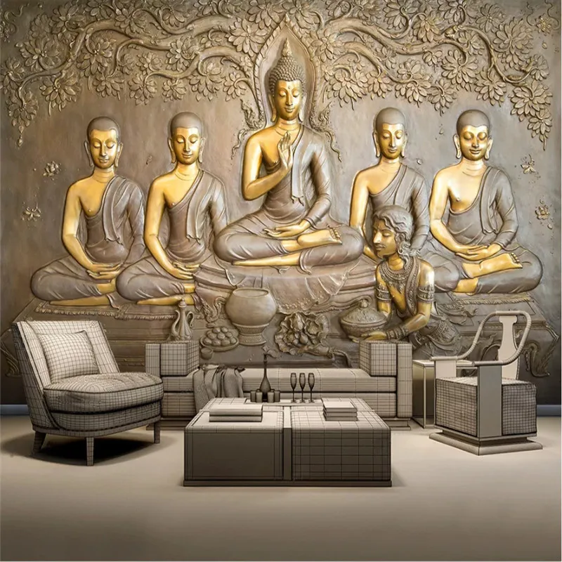 Thangka King Kong статуя Будды Шакьямуни 3D рельефная фотообои для отеля ресторана Прихожая настенная бумага 3D