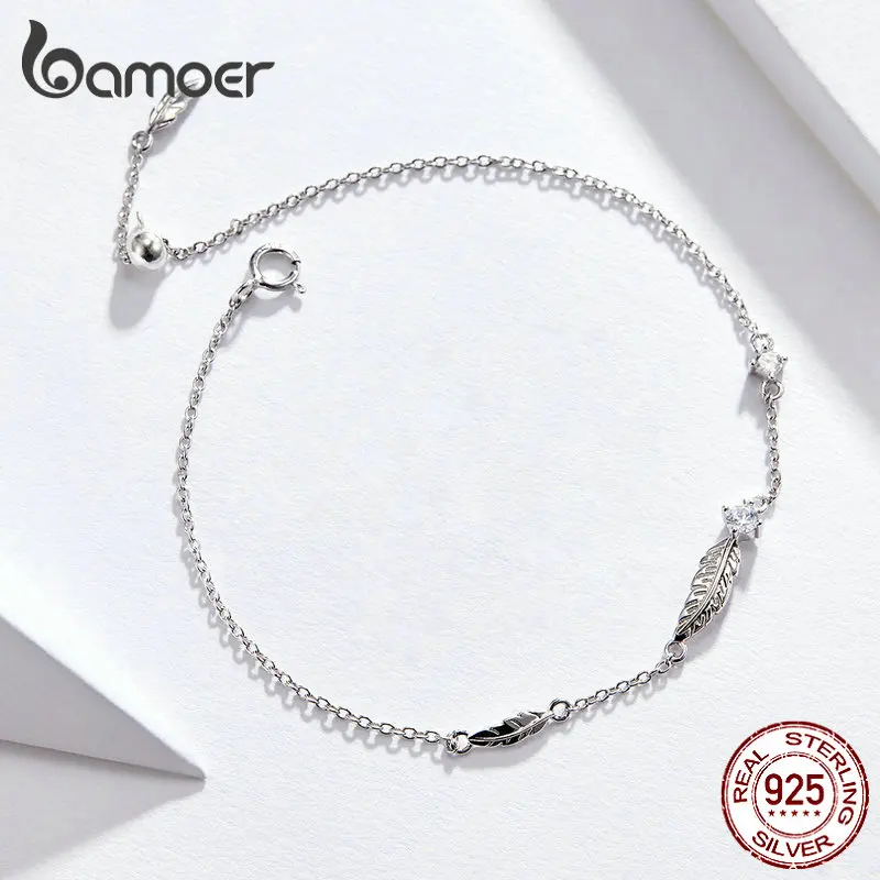 Женский винтажный браслет-цепочка BISAER, серебро 925 пробы с перья...