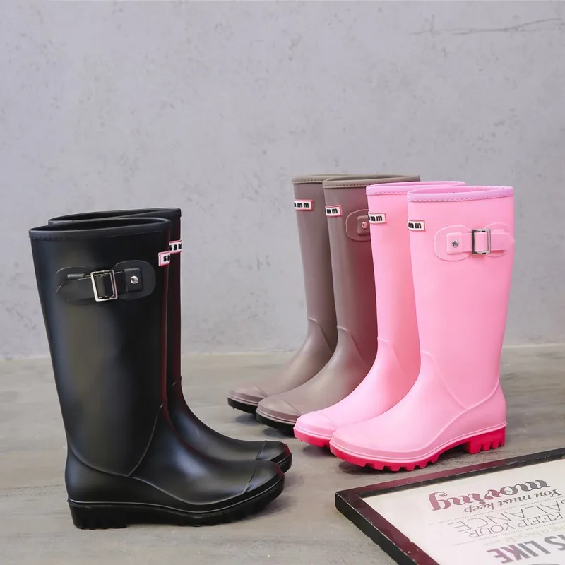 Женские резиновые сапоги YEELOCA, непромокаемые сапоги до колена, с пряжкой, из ПВХ