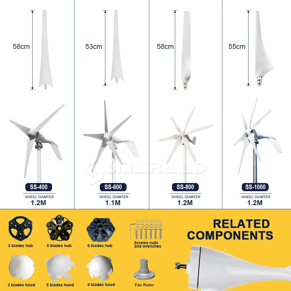 Ветряной генератор 12 В, 24 В, 48 В, 400 Вт, 600 Вт, 800 Вт, ветряные мельницы с гибридным контроллером MPPT, лопасти 356