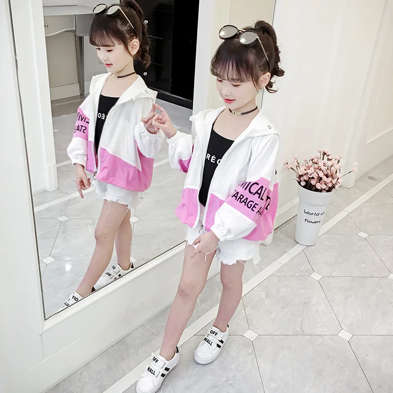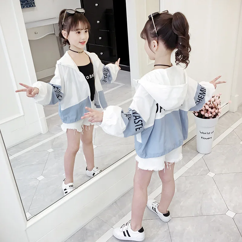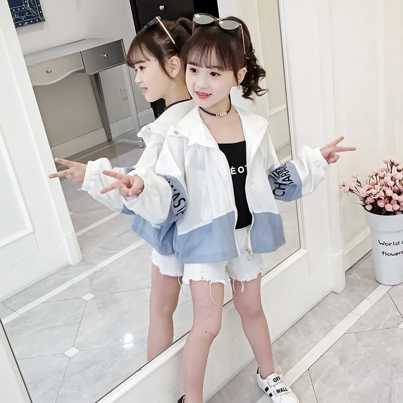 Ветровка детская с капюшоном и длинным рукавом, Пляжная Праздничная куртка для девочек и подростков, Солнцезащитная верхняя одежда, пальто, одежда для весны и лета