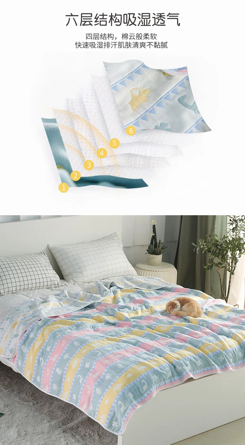 Муслиновое детское одеяло, 6 слоев, 90*100 см
