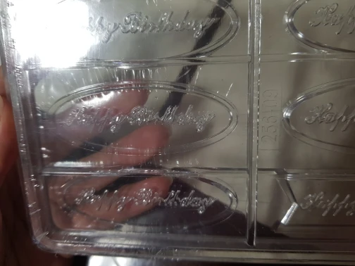 Отличный продукт, как описано. Форма изготовлена из толстого пластика, она прочная и стабильная, отлично подходит для изготовления шоколада. Он был хорошо упакован в пенный тип упаковки. Однако были некоторые царапины на поверхности, но ничего критического. Доставка занимает 2 месяца.