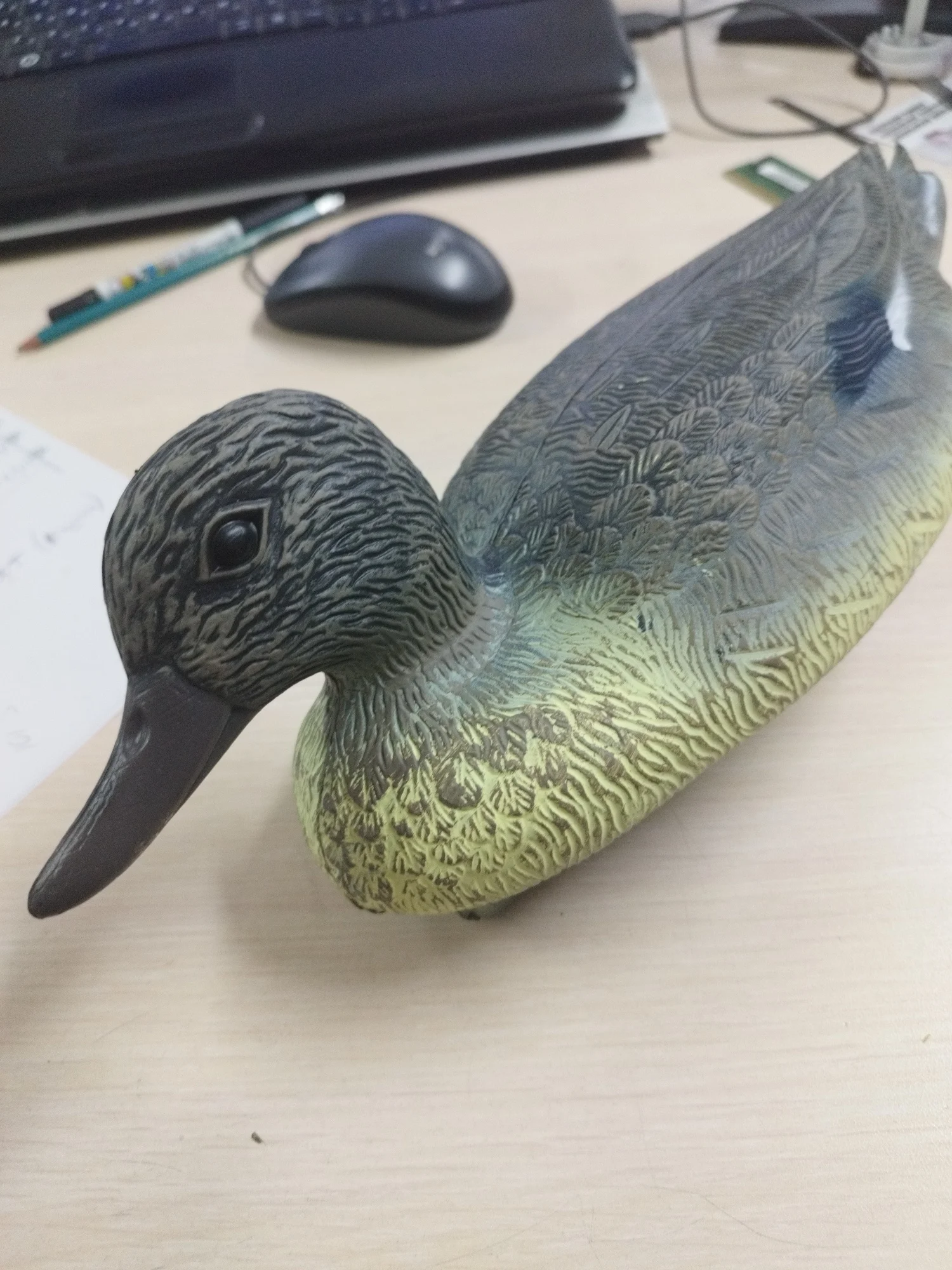 Изделие хорошего качества! Пластик нормальный не тонкий, рельефность пера выражена. Краска не соответствует естественной окраске ни кряквы, ни серой утке. Местами пластик блестит. Киль имеется, но не огружен. Петля для крепления якоря отвалилась. Несмотря на все это продукт мне понравился! Для использования на охоте конечно же буду дорабатывать: матовить пластик, менять окрас, помещать груз в киль (кусок арматуры будет в самый раз, дёшево и сердито).