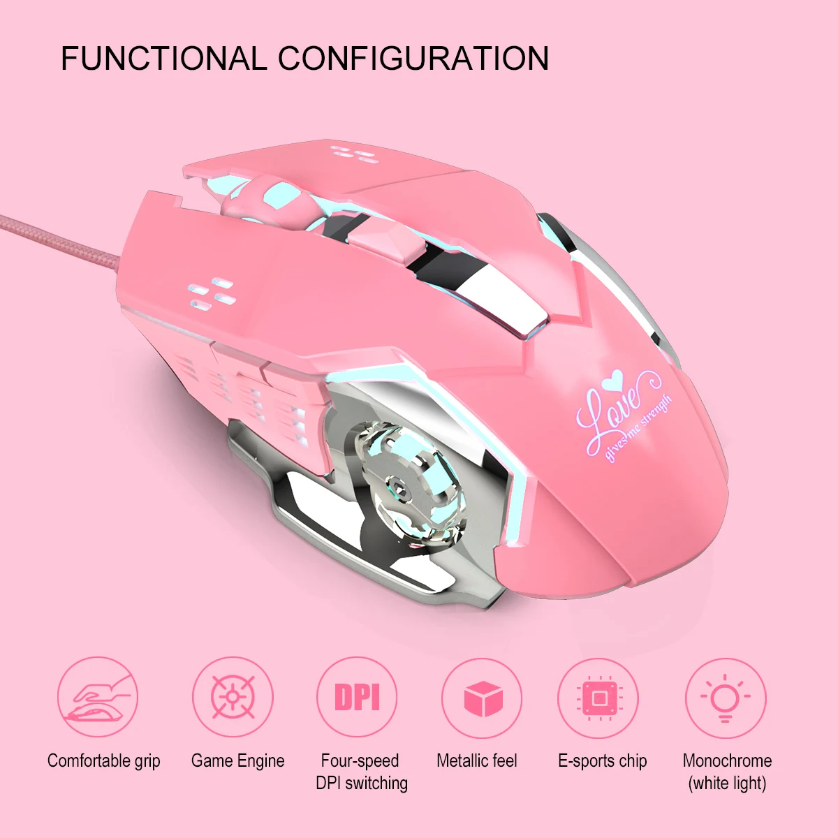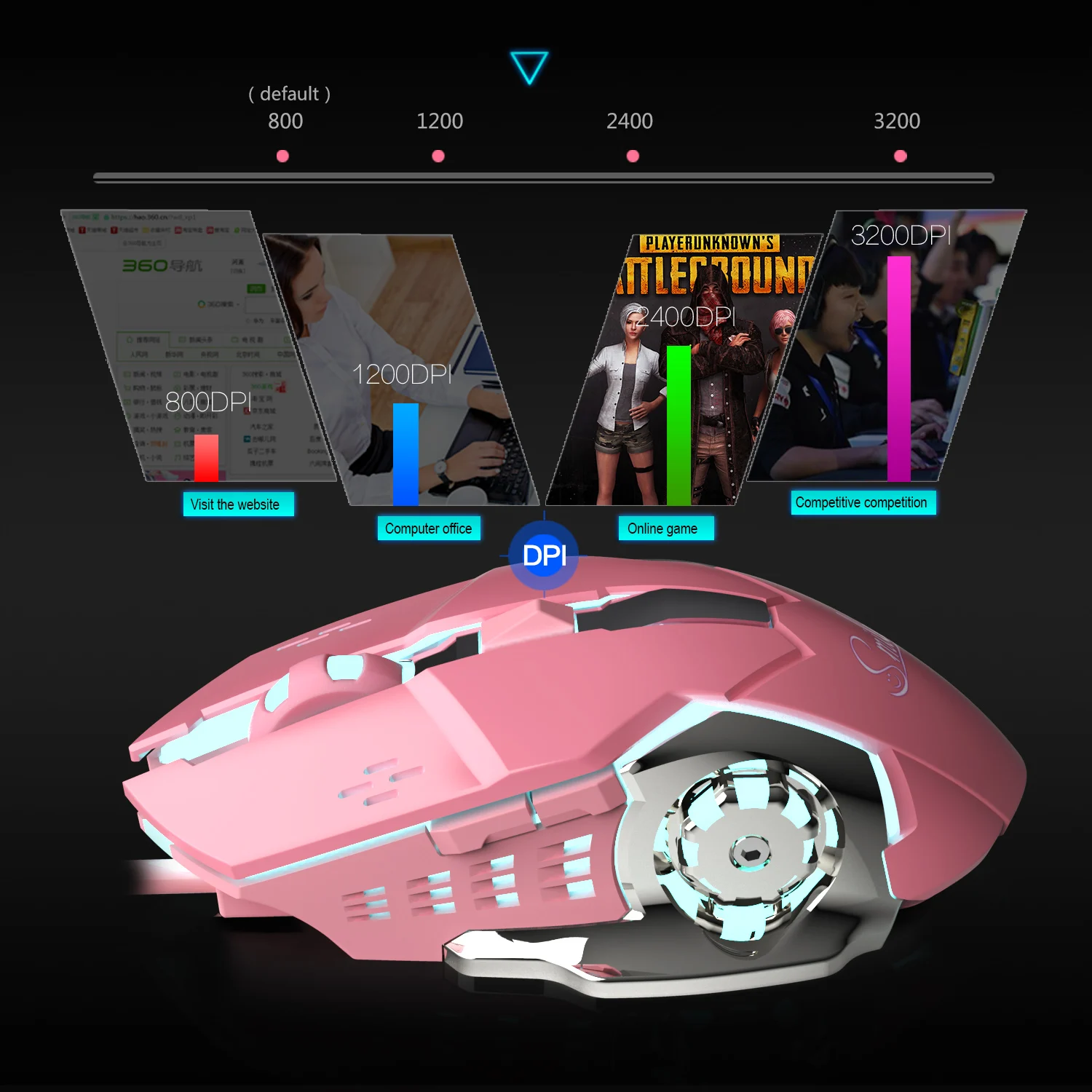 Розовые игровые мыши для девочек 3200dpi крутая подсветка внутренняя геймерская мышь 4 уровня DPI USB Проводная Женская мышь для офиса ПК