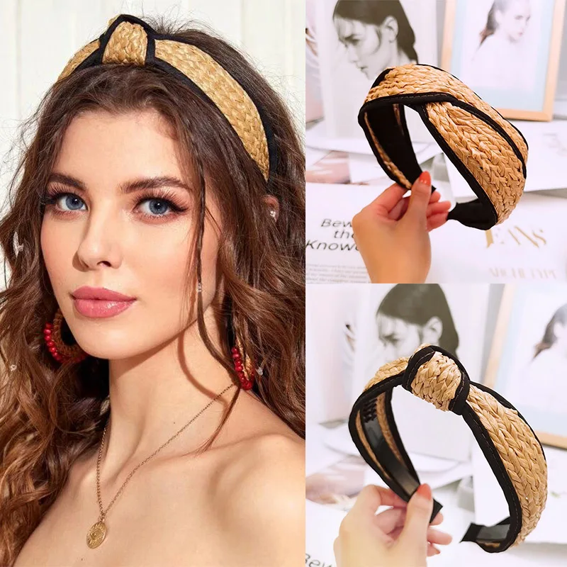 Женский Плетеный обруч LEVAO, широкий обруч из соломы с узелком, в Корейском стиле, аксессуар для волос