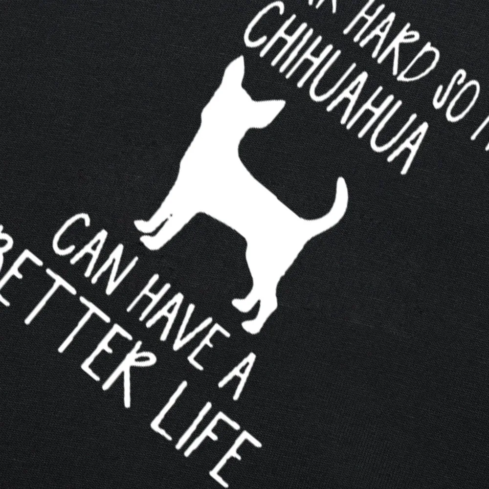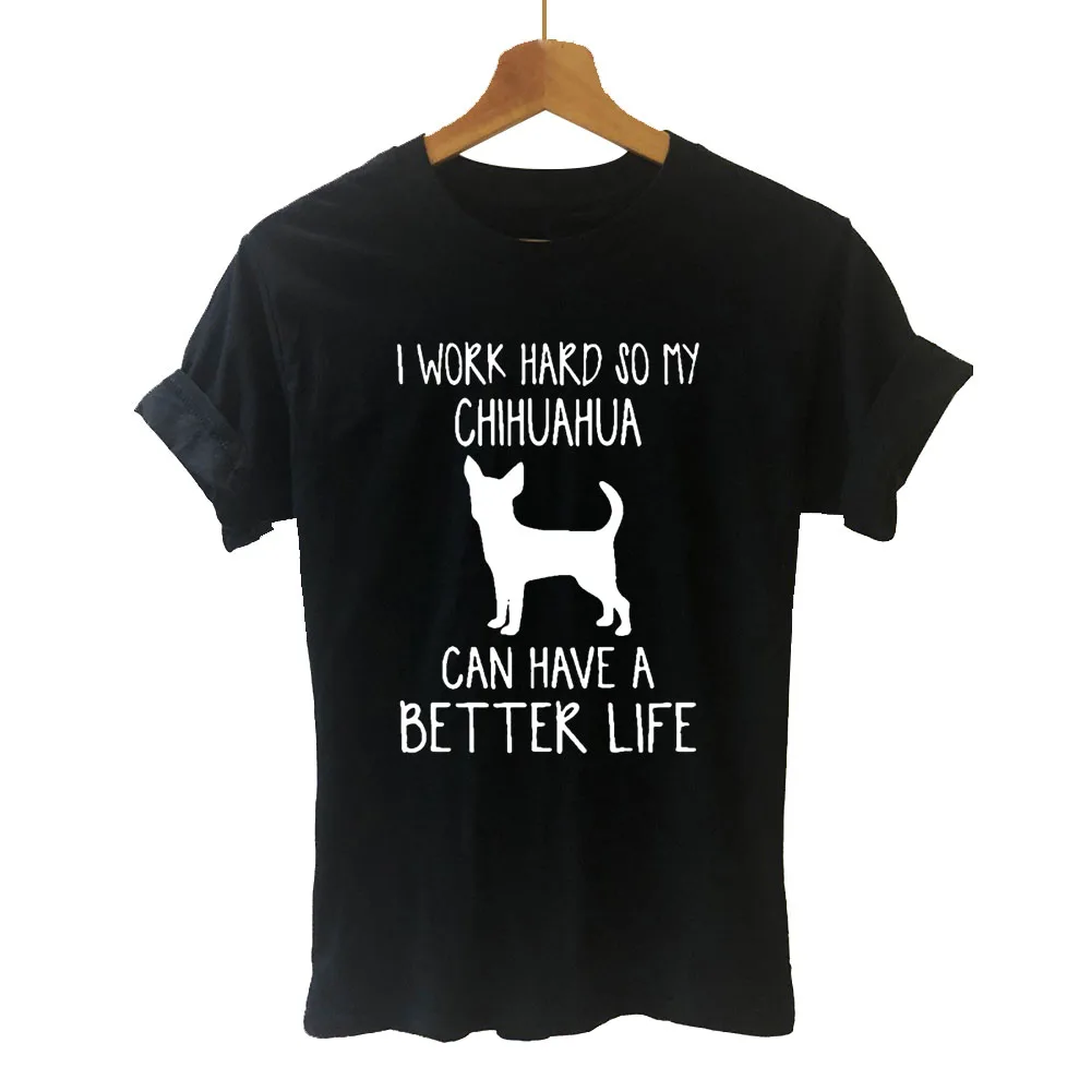 Женская футболка с принтом Я работаю усердно и надписью Так Чихуахуа