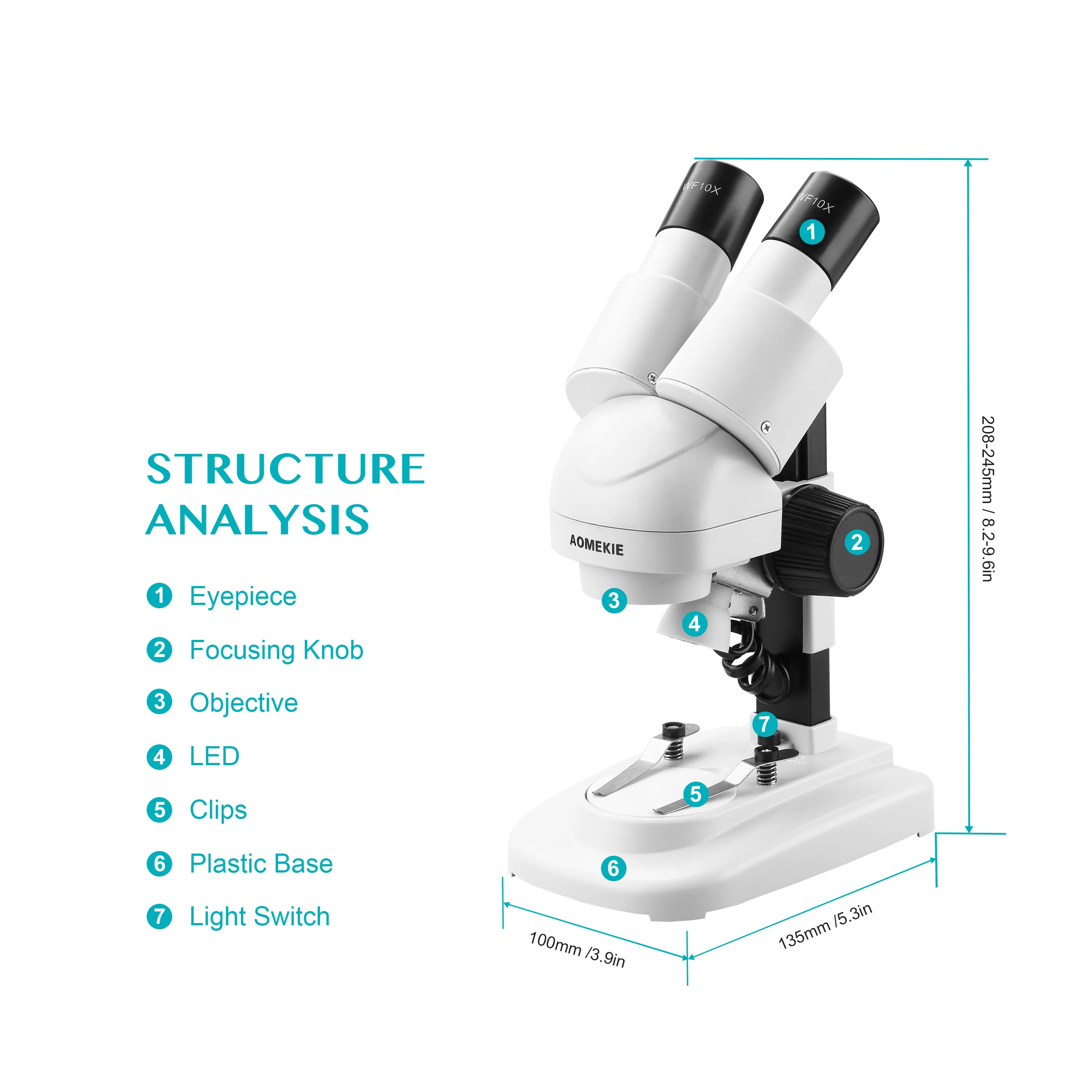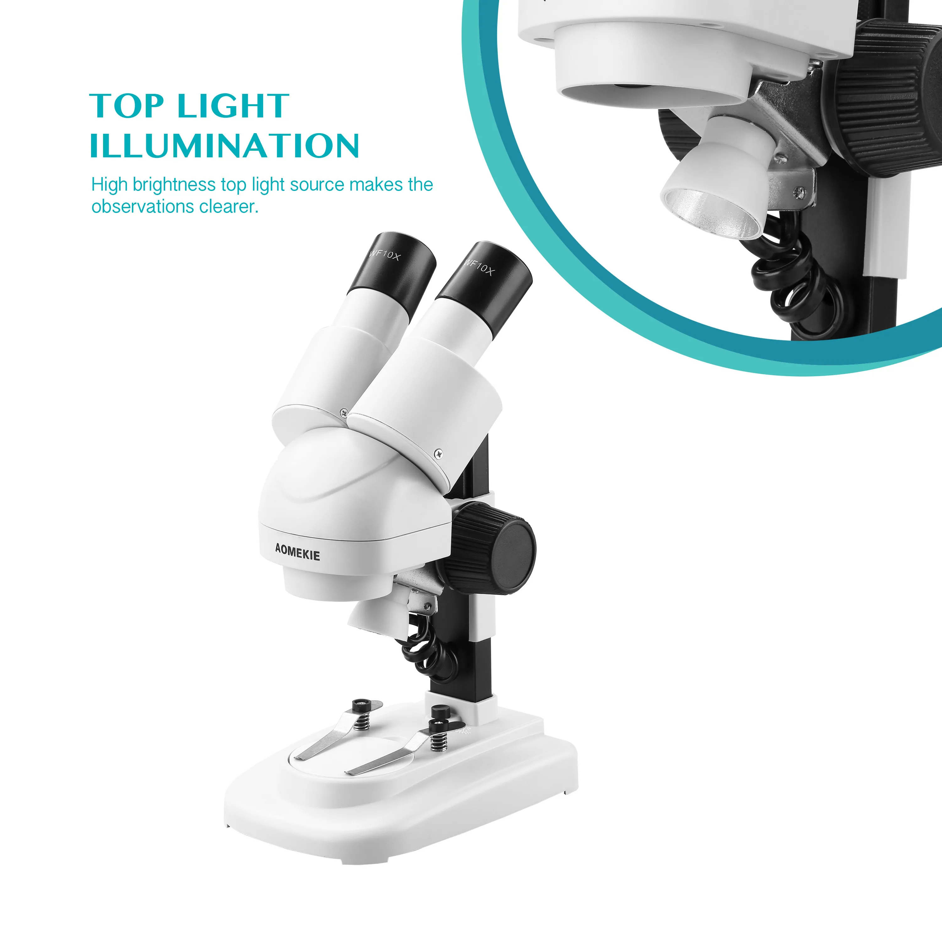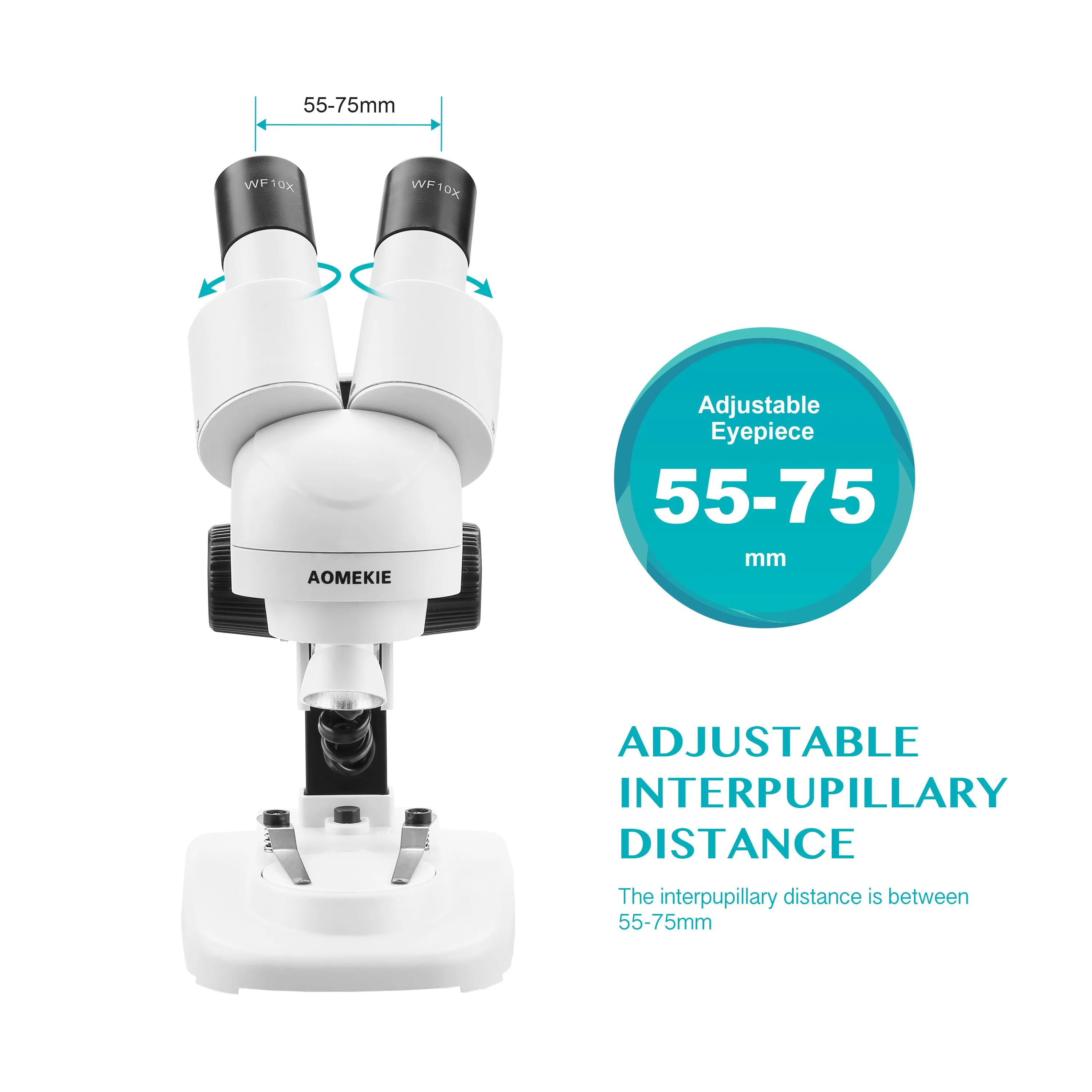 Бинокль AOMEKIE 20X, стереомикроскоп со светодиодной подсветкой, печатная плата, инструмент для ремонта телефонов, широкоугольный окуляр с наглазниками