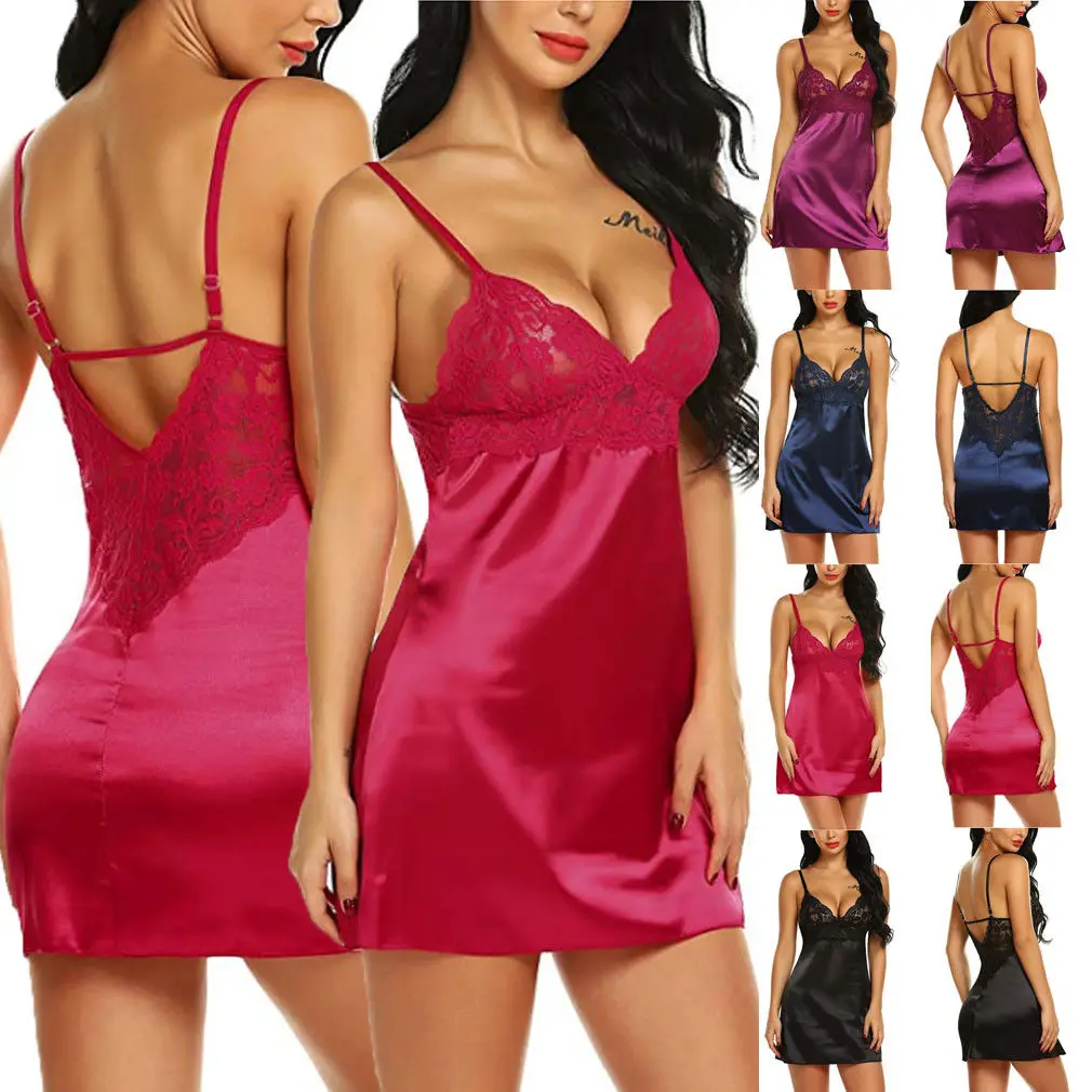 Сексуальное женское нижнее белье Hirigin, шелковое кружевное платье без рукавов с глубоким V-образным вырезом, ночная сорочка, ночная рубашка, одежда для сна