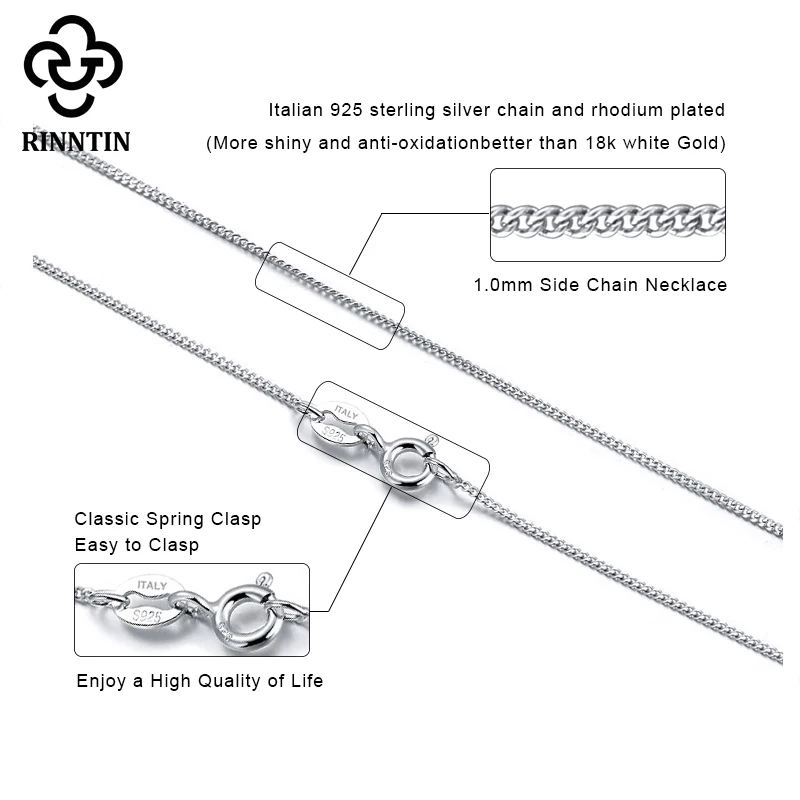 Rinntin S925 стерлингового серебра боковой ссылка о цепи для женщин простая тонкая цепочка ожерелье ювелирные изделия аксессуары TSC18