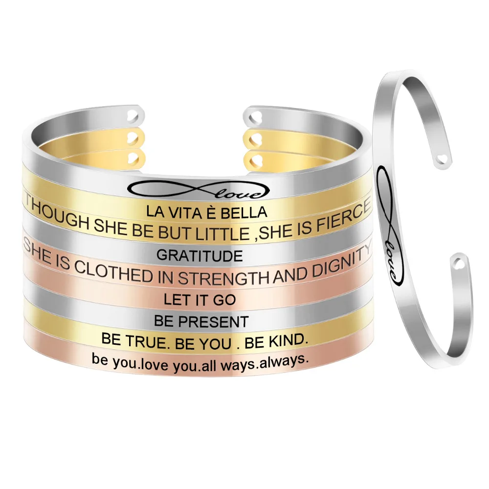 Браслеты женские и мужские с вдохновляющими цитатами, ширина 4 мм под заказ, ювелирное изделие с мантрой, Подарочный Браслет-манжета с надписью
