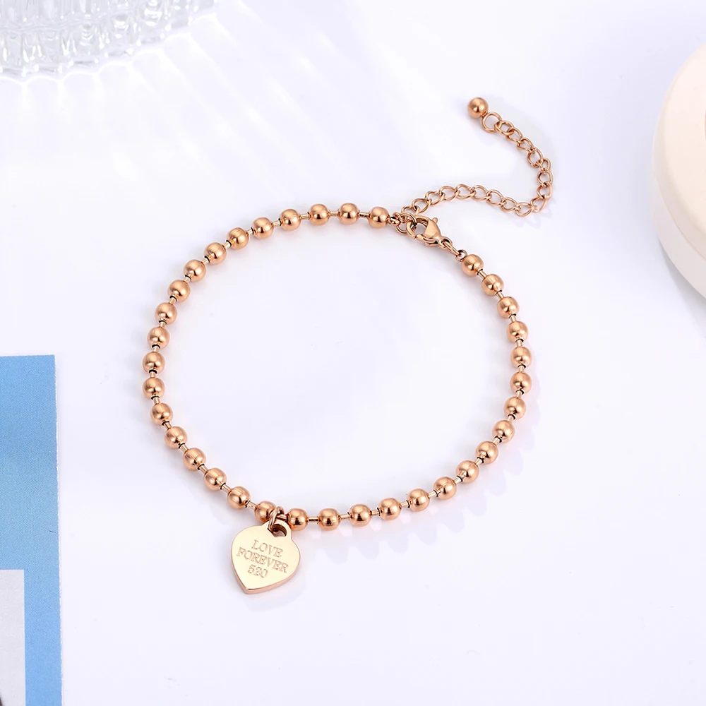 Браслет на ногу женский из нержавеющей стали, с бусинами, в форме сердца