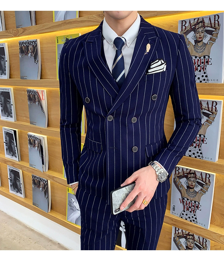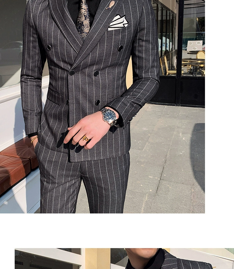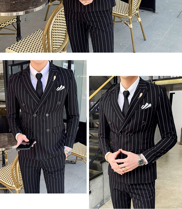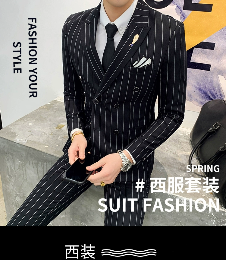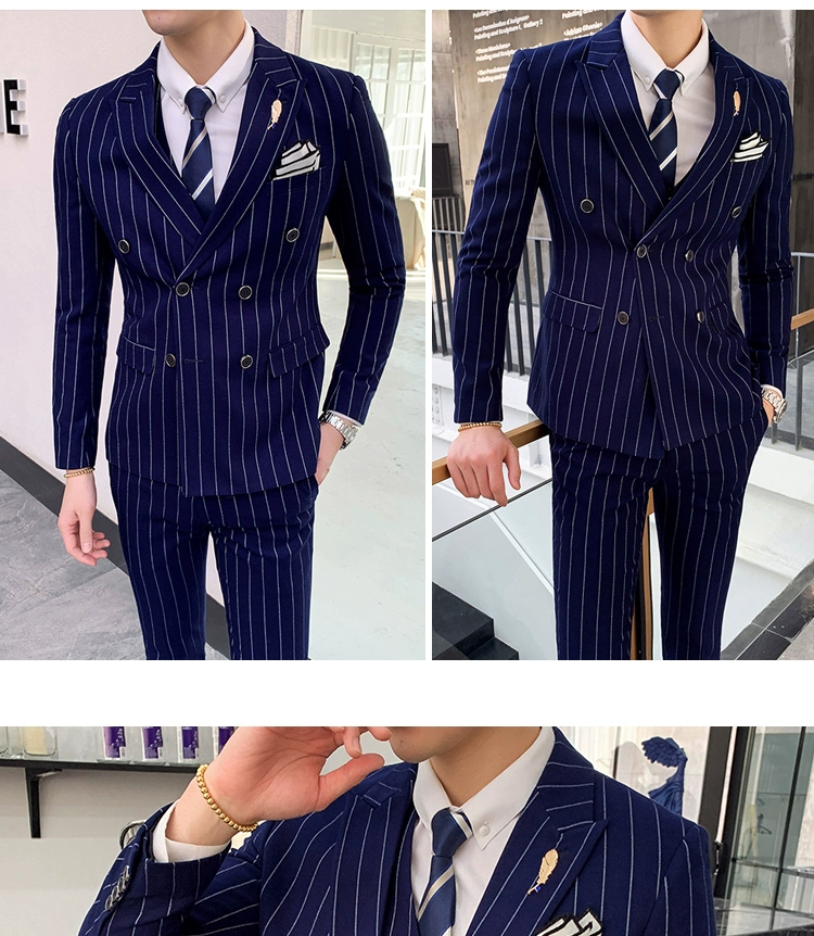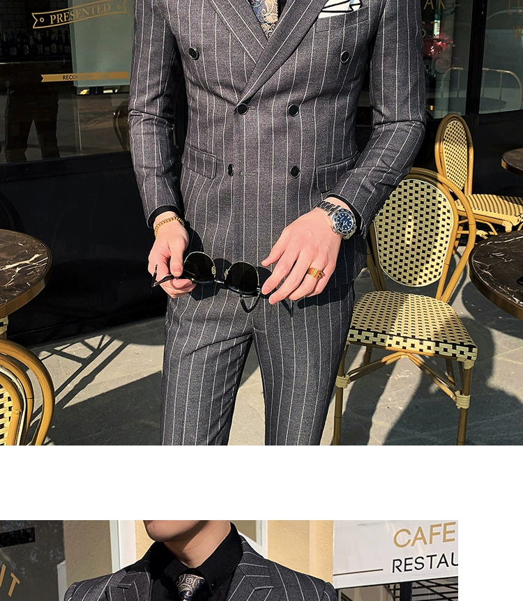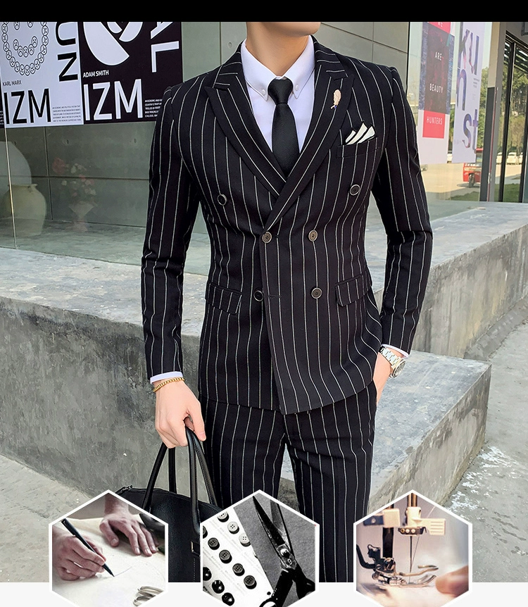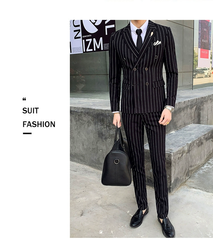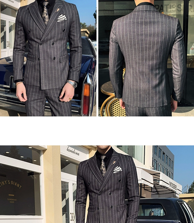 Мужской классический облегающий смокинг, Свадебный, Повседневный, в полоску, в британском стиле, 2 шт.