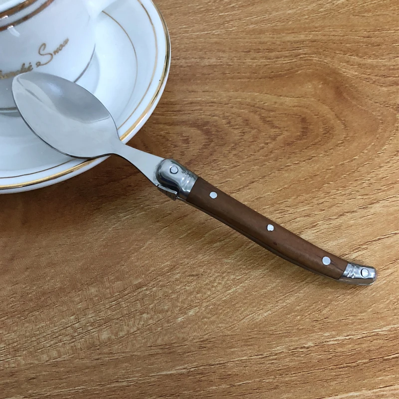 Маленькая чайная ложка Laguiole, стиль Laguiole из нержавеющей стали, Мини Кофейные десертные чайные ложки, набор с деревянной ручкой, японская посуда 61012 шт.
