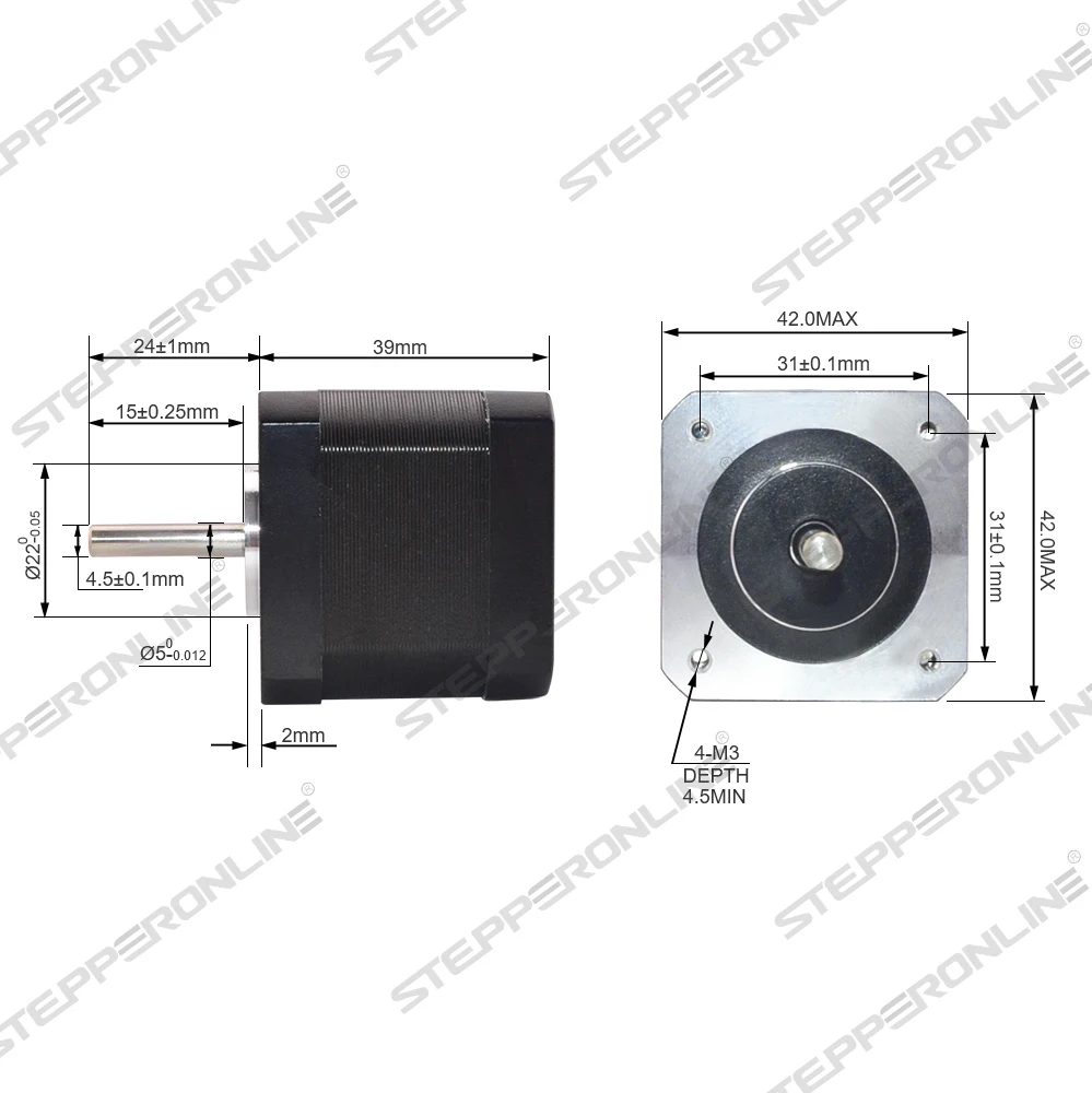 Шаговый двигатель Nema 17, 39 мм, 42BYGH 1.5A 45Ncm Nema17, 4-проводной, с кабелем 1 м и разъемами для 3D-принтера
