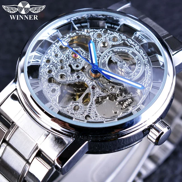 Мужские наручные часы в стиле стимпанк Masculion WINNER, черные часы-скелетоны из нержавеющей стали, 2019
