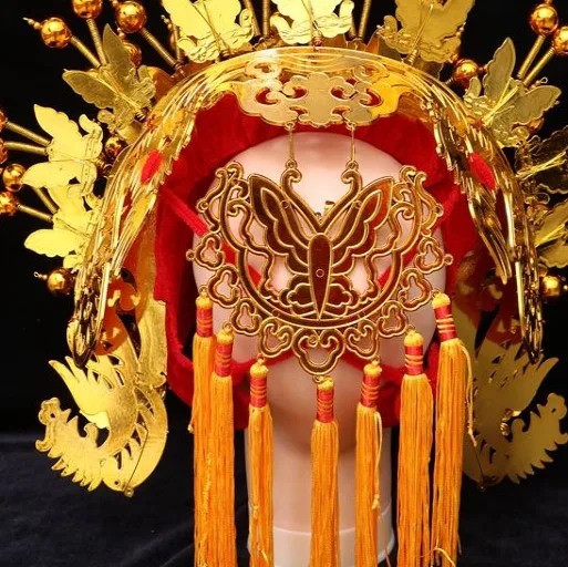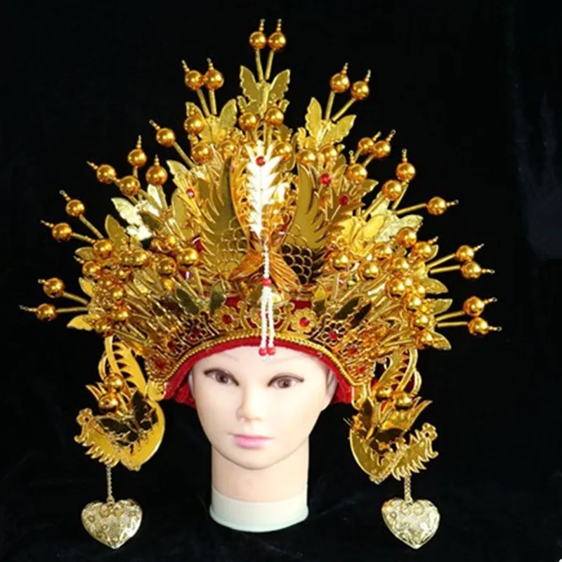 Золотые женские Корона шляпы Древняя китайская шляпы опера Косплей драма шляпы старинные невесты Шляпы Хэллоуин Косплей Карнавал Поставок