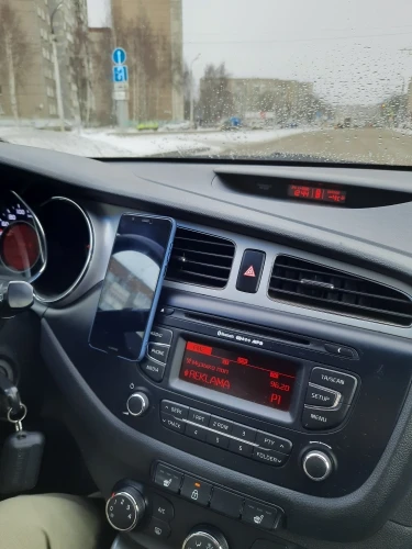 Посылка шла без отслеживания 2 с лишним месяца. В Nissan Teana J32 подходит не очень хорошо. Крепление под тяжестью телефона опускает планку дефлектора до конца вниз, как следствие, телефон нижней частью касается панели (торпеды), возможны потёртости. Чтобы этого не происходило, перевернул держатель на 180 градусов. Хорошо магнит будет держать, только при условии, если металлический круг наклеен прямо на чехол или на сам телефон, но при условии, если он будет использоваться без чехла! Я наклеил круг под силиконовый чехол и смартфон весьма легко снимается с крепления. Поэтому при сильной тряске смартфон легко может отвалиться с крепления, особенно если смартфон тяжёлый или чехол толстый (при наклейке под чехол). Неприятным моментом было то, что на второй день металлический круг отклеился под чехлом и сместился в сторону и вниз. Видимо клеевой слой слишком слабый и на морозе легко круг отошёл. В общем это далеко не самое лучшее и удобное решение.