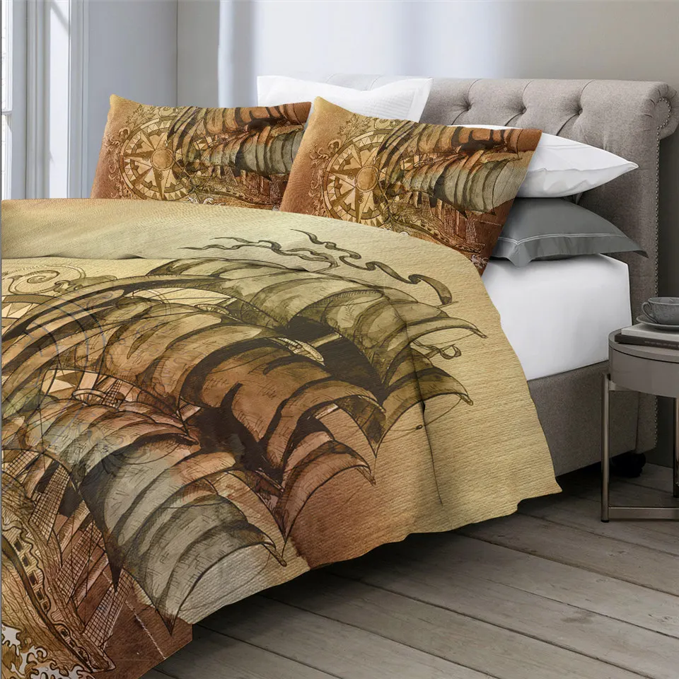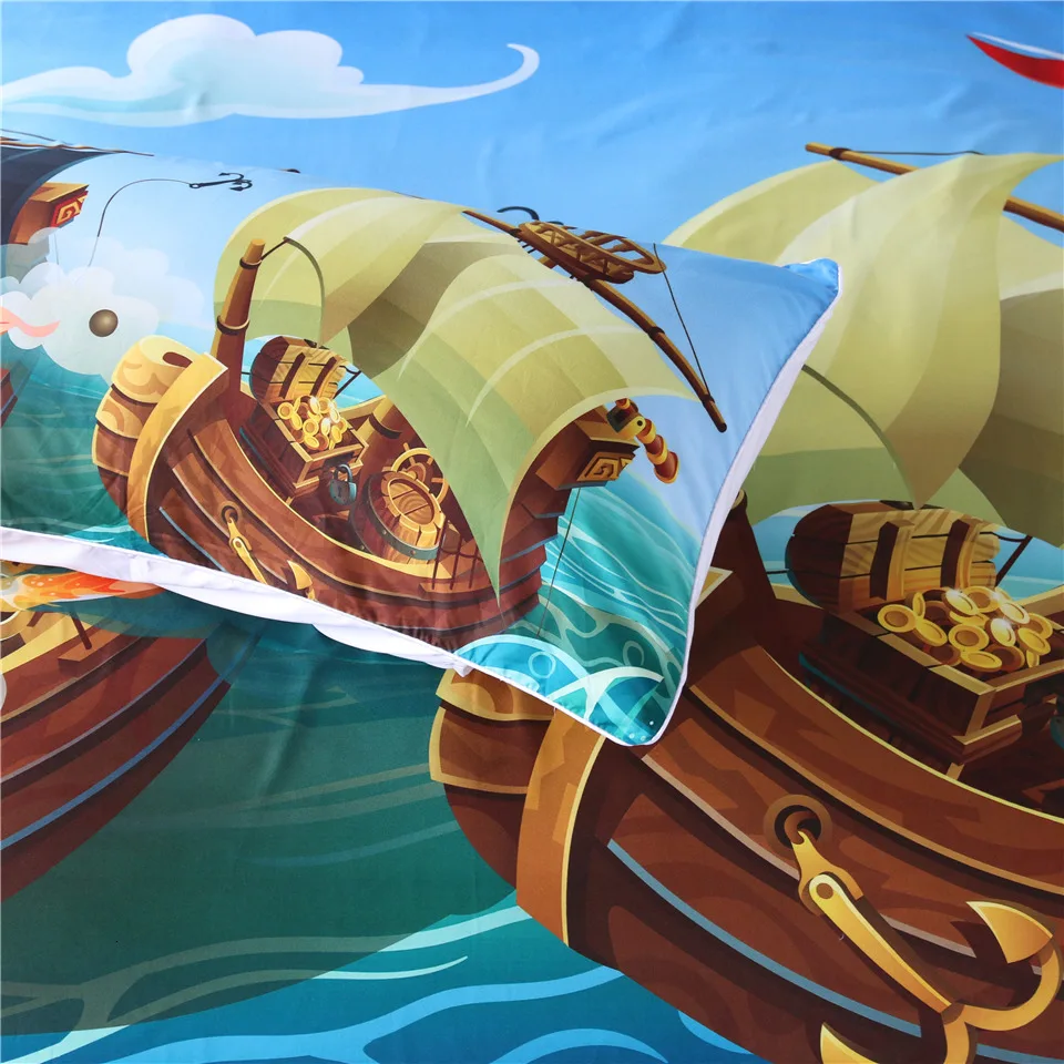 Комплект постельного белья BeddingOutlet с пиратским пододеяльником и мультяшным рисунком лодки для детей, постельное белье для мальчиков с морским океаном, покрывала из 3 предметов