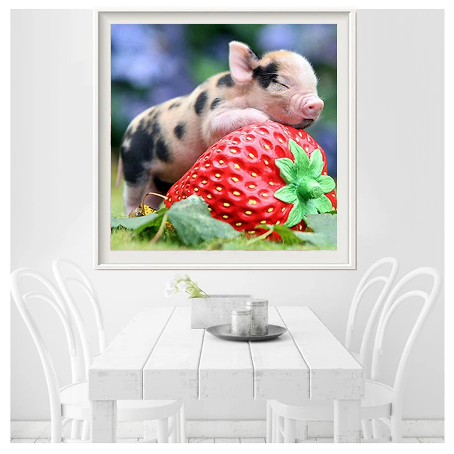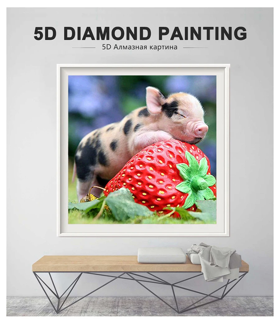 5D алмазная живопись, животные, Свинка и фрукты, полная Алмазная мозаика, распродажа, круглая картина Стразы, алмазная вышивка, иконы, подарок