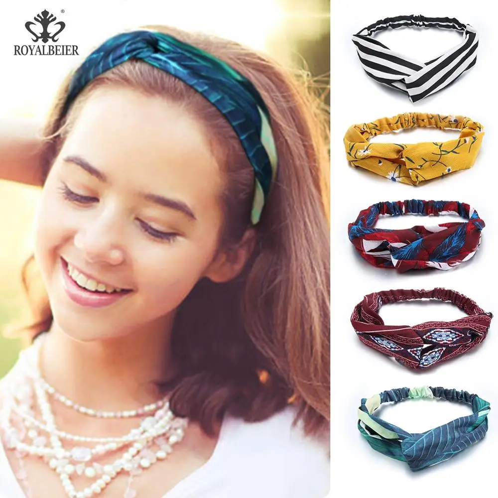 Женская повязка для волос в богемном стиле, эластичная повязка на голову с бантиком, Спортивная Повязка на голову, повязка на голову для девочек, головной убор HB069