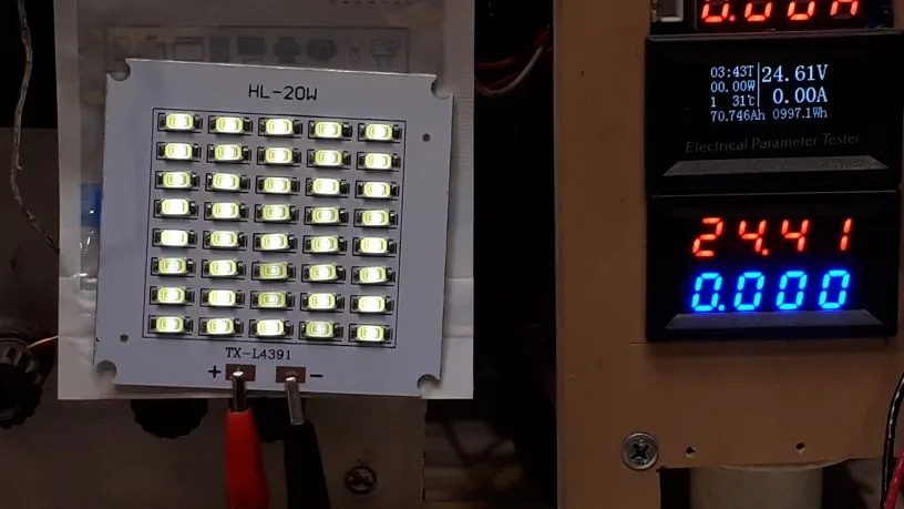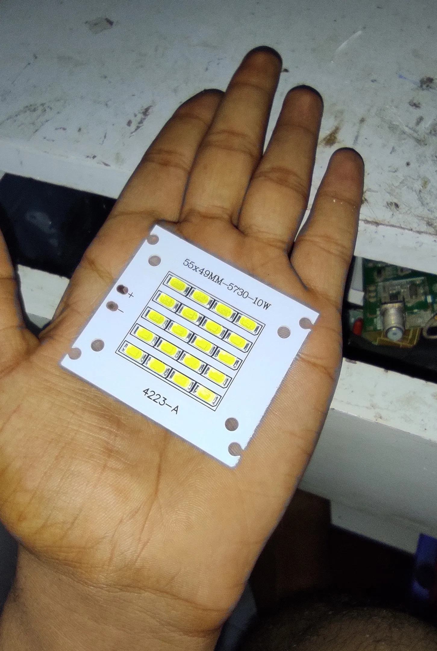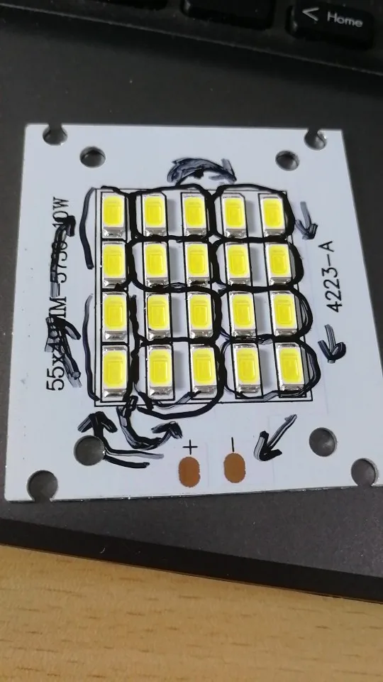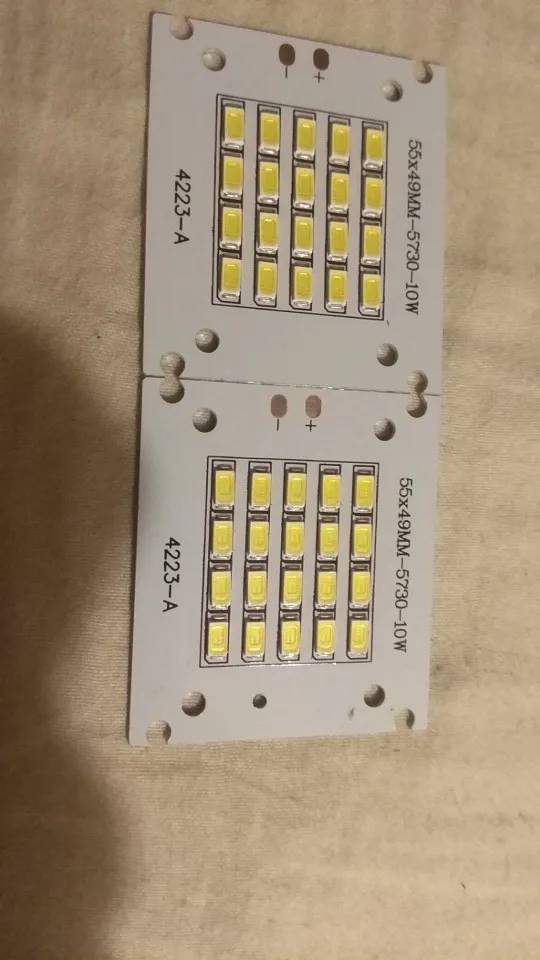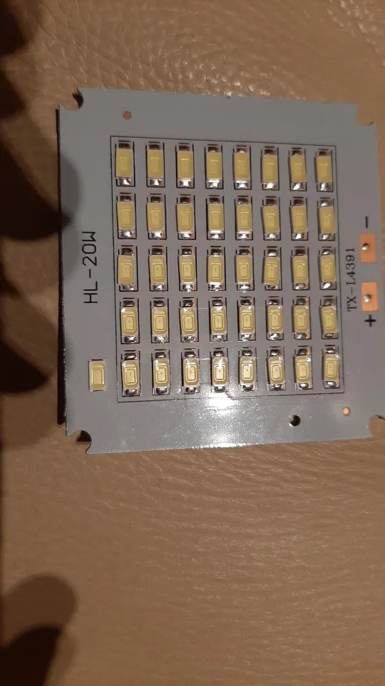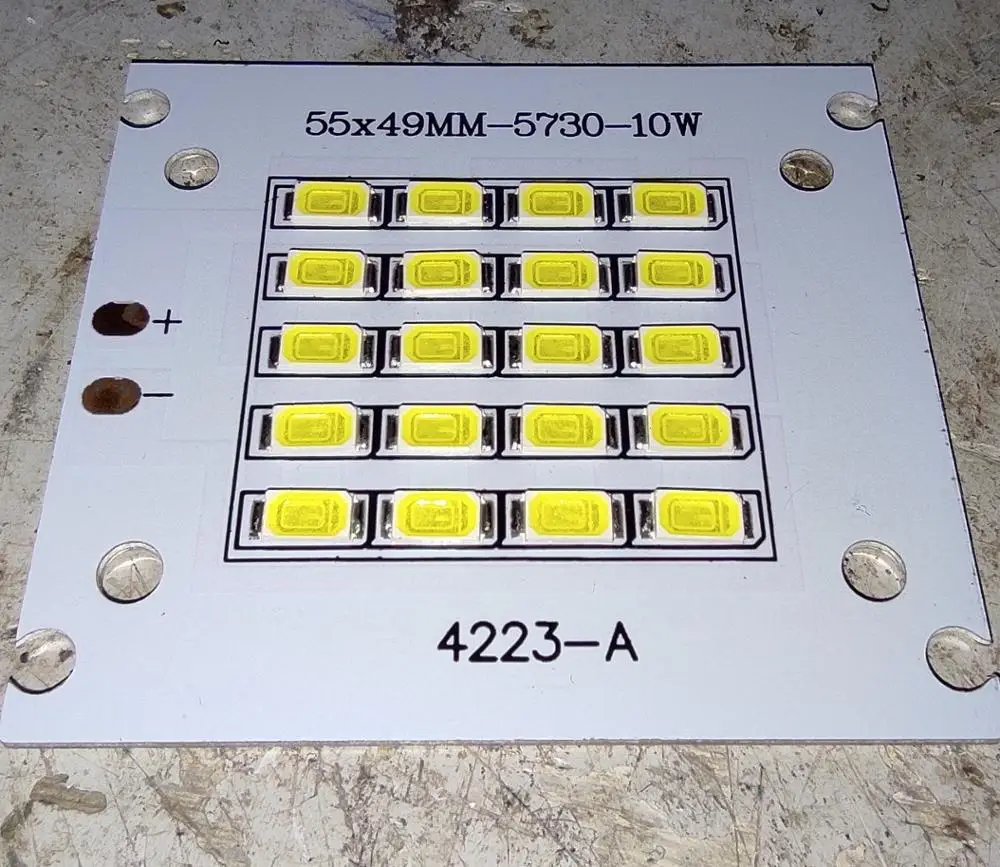 матрица неплохая, однако на части платы съехали светодиоды и припаялись криво, кристалл конечно маленький, максимум 0,2-0.3 ватта, однако больше, чем у светодиода 5730 с али за 40 рублей (на фотографии он в правом нижнем углу)