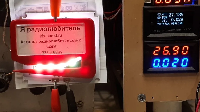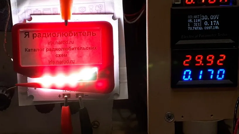 доставка 28 дней . пришло составе огромного пакета. брал для попробовать. попробовал. засветка начинается с 23 В. при 30 вольтах ток засветки 170 миллиампер точка Это примерно 5 Вт. больше к сожалению у меня не выдаёт источник питания Да и глаза пожалуй не выдержат. к товар и продавца рекомендую