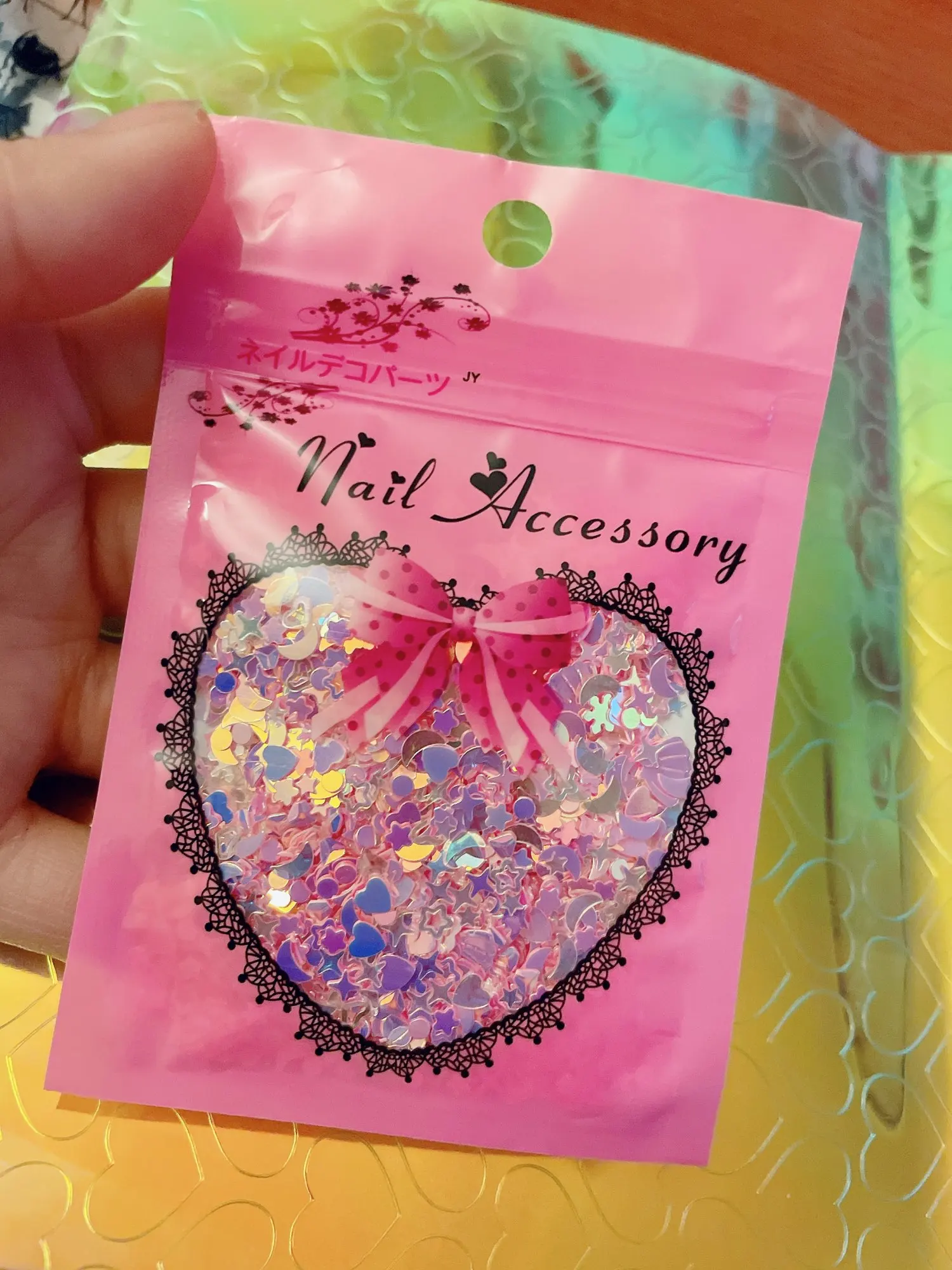 10 гпакет в форме Русалочки, розовый корпус, голографический лак дл...