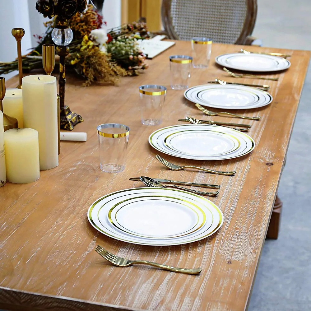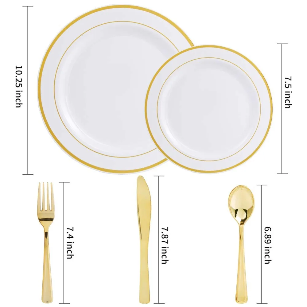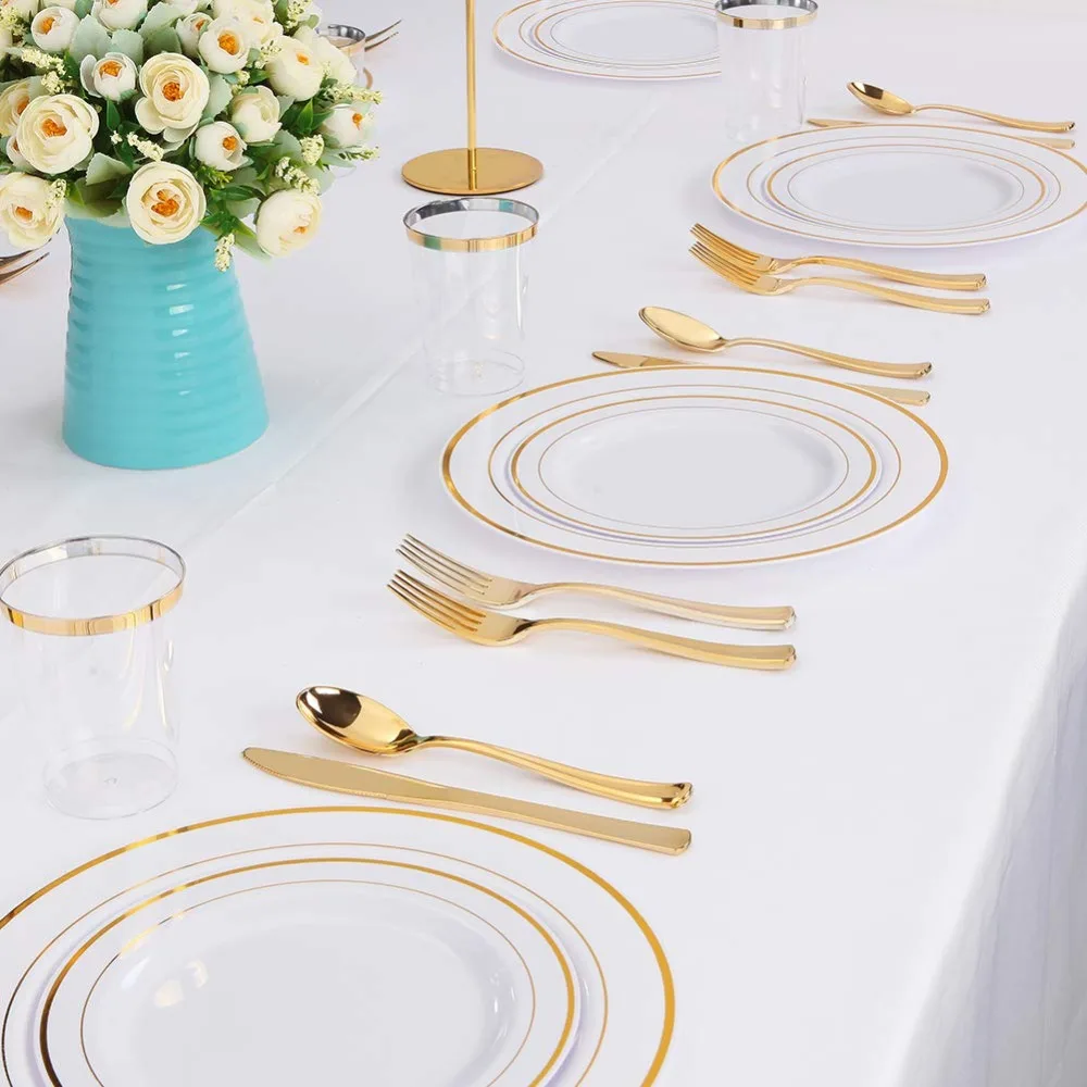 Сервис для 25 гостевых золотых тарелок и золотой пластиковой посуды, лучший набор одноразовой столовой посуды для вечеринок Wedding-125pcs