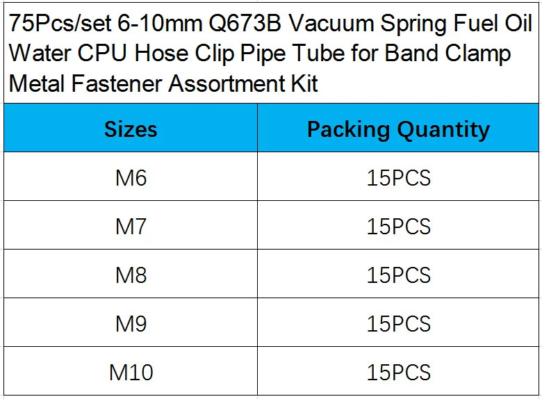 75 шт.компл. 6-10 мм Q673B вакуумная пружина, топливное масло, вода, процессор, шланг, зажим, труба для ленточного зажима, набор металлических крепежных элементов в ассортименте