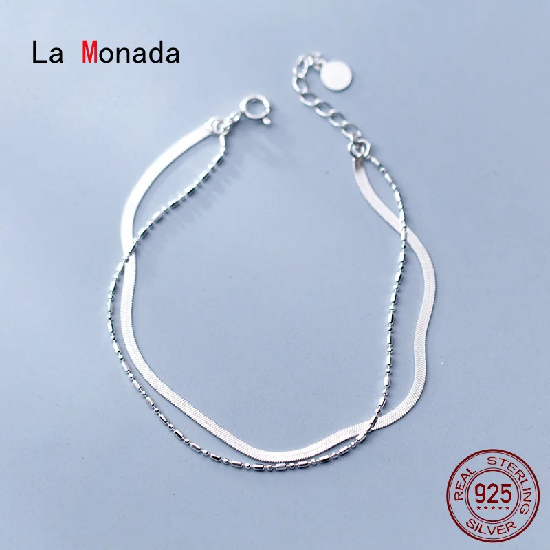 Женский двухслойный браслет-цепочка La Monada, браслет из стерлингового серебра 925 пробы, минималистичное ювелирное изделие в виде змеи