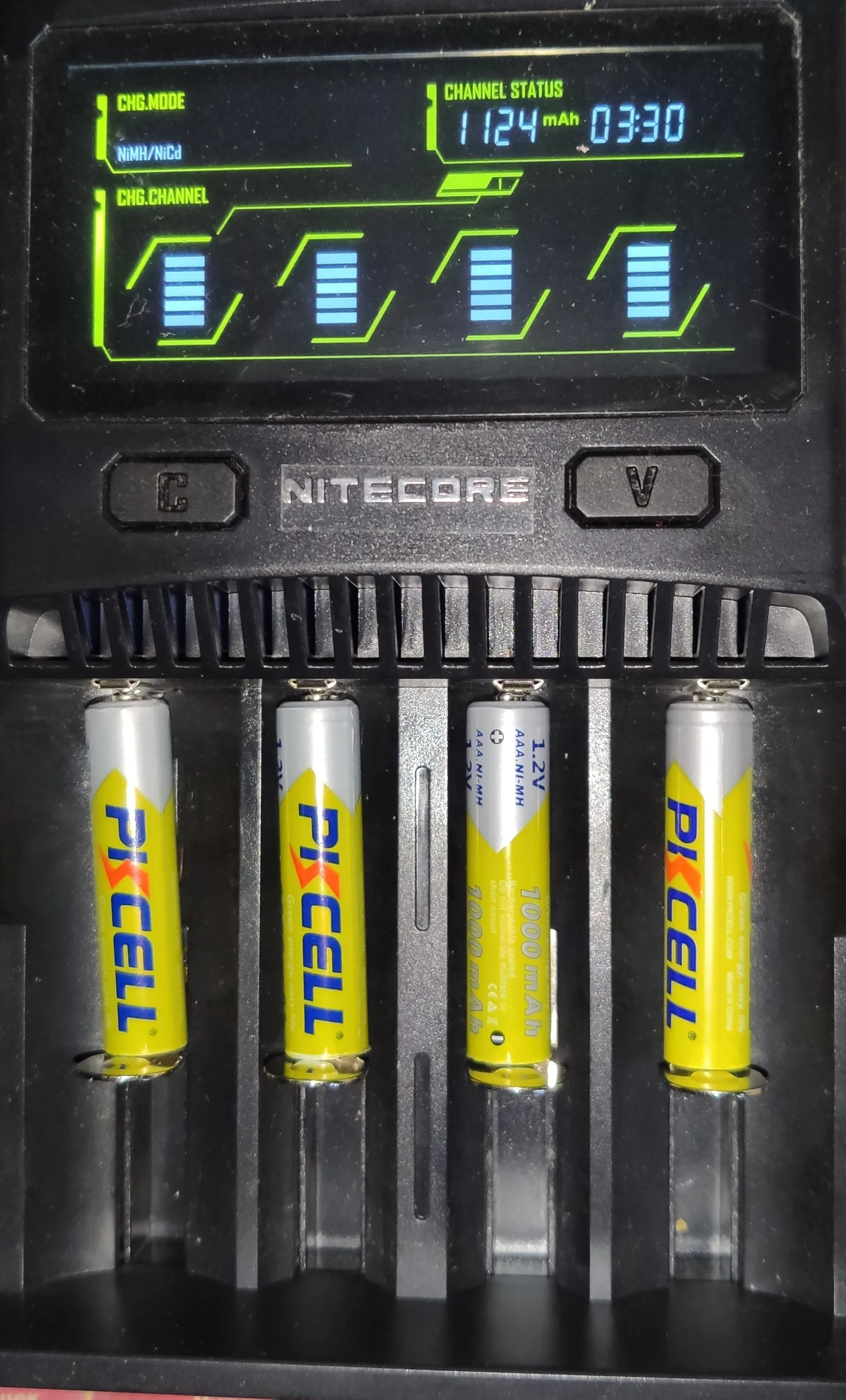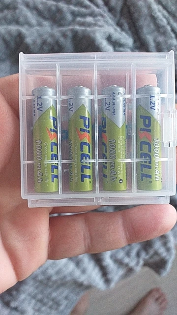 Доставляли чуть больше месяца. Трек все время отслеживался. Заказ пришел в картонной коробке. Внутри четыре батарейки в общей утягивающей пленке и пластиковый кейс для них. Кейс не очень удобен. Рассчитан скорее на АА батарейки. Внутри батарейки мотаются. По характеристикам все совпадает. Поставил на тестирование опусом. Все четыре батарейки показали значения от 1030 до 1070 мАч. Правда на сколько циклов заряд-разряда их хватит неизвестно. Покупал для телевизионного пульта. В нем работают нормально. Для такой цели отличная цена. С учетом купонов обошлись примерно в 250 рублей.