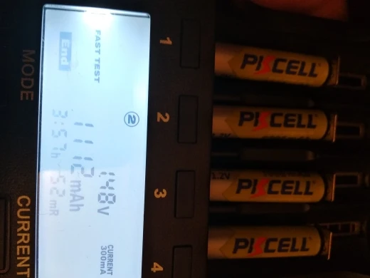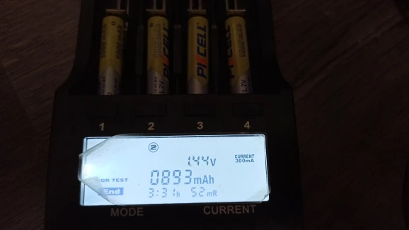 Долгая доставка (8шт - 1000mAh ААА), заказывал 11.11.получил 11.01. В режиме тест (лиитокала 500s)4шт показали приемлемый результат, 4-е другие с третьей попытки 1000 mAh. Под нагрузкой не проверял. С продавцом не общался.