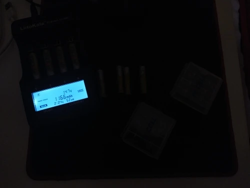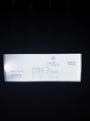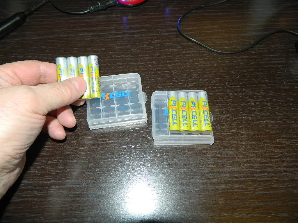 Долго шёл заказ, да ещё через СДЭК, пришло 4 штуки, в комплекте контейнер для них. Сразу поставил на проверку с зарядкой от 955 до 960 Ма.
