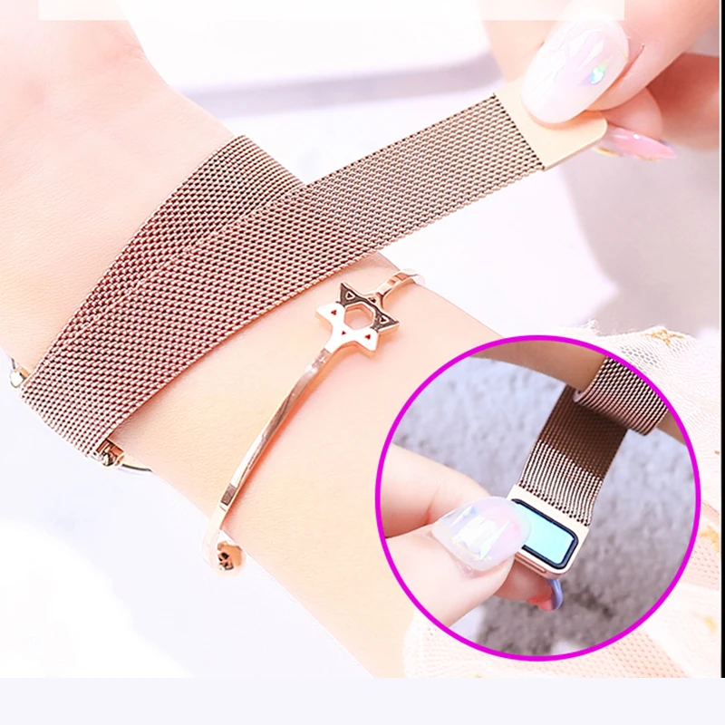 Женские кварцевые часы с сетчатым браслетом, с магнитной пряжкой