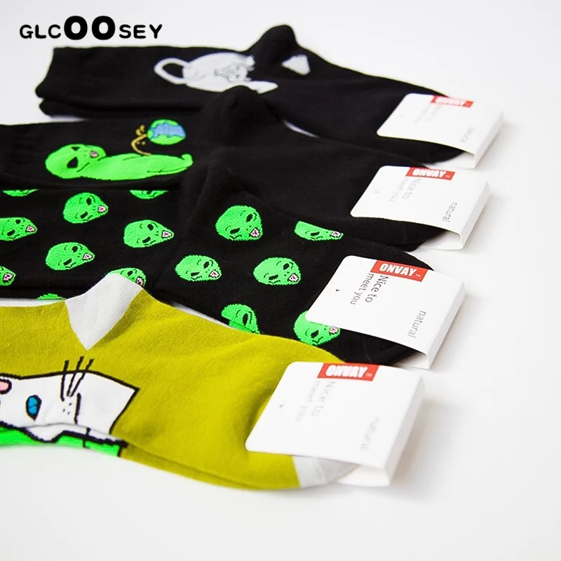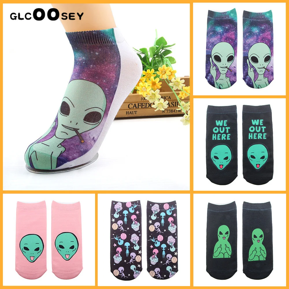 1 пара осень-зима женские хлопковые носки арт Забавный чужой планеты Творческий Забавный мультяшный Кот, носки из дышащей ткани