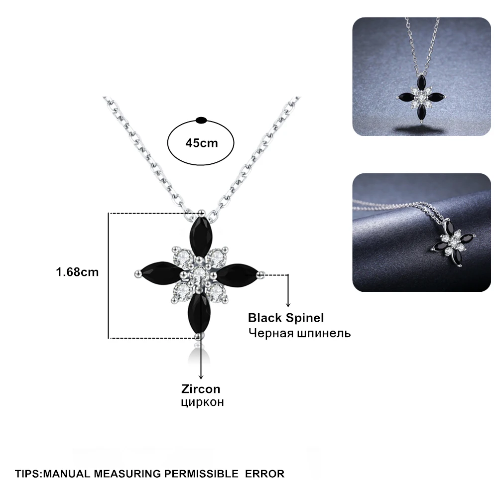 Женское ожерелье из серебра 925 пробы, в виде цветка черной шпинели