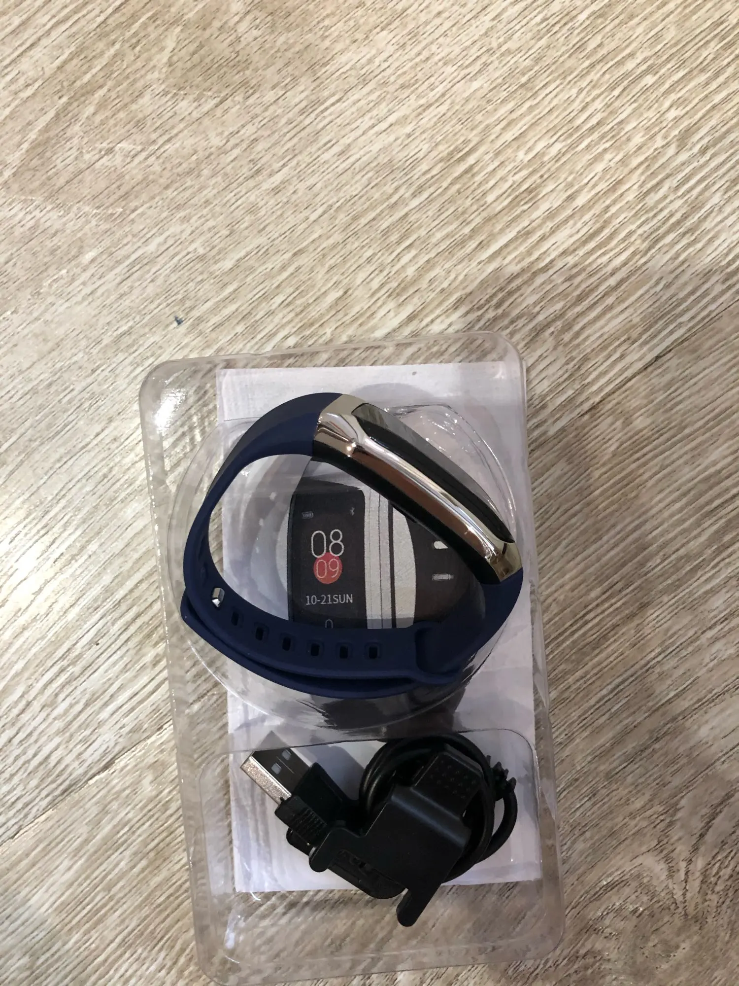 +Быстрая доставка (10 дней). -При доставке упаковку помяли. -По состоянию товар походит на б/у (весь в соринках, грубые царапины снизу корпуса). +Экран чёткий и яркий. +Удобная активация от встряхивания рукой. -Экран быстро гаснет (за 4 сек.). +Пульсометр и шагомер рабочие (но точными их не назовёшь - чем больше отклонение ваших показателей от нормы, тем больше погрешность). -Тонометр - игрушка (врёт; меряет "давление" на всём неживом; калибровать не выходит). -Для полноценной работы необходим смартфон; приложение не проработанное и туговатое. +Долго держит заряд (без фанатизма хватает на неделю). -Зарядник очень хлипкий. Заключение: В принципе, это не истинный фитнес-трекер, а именно продвинутые "часики" с интересными функциями наподобие настоящих трекеров. В целом товар более-менее соответствует своей цене. Рекомендовать его стоит тем, кто ещё не решился на покупку полноценного крутого брендового фитнес-браслета, а только присматривается и хочет ознакомиться с этим видом гаджетов.