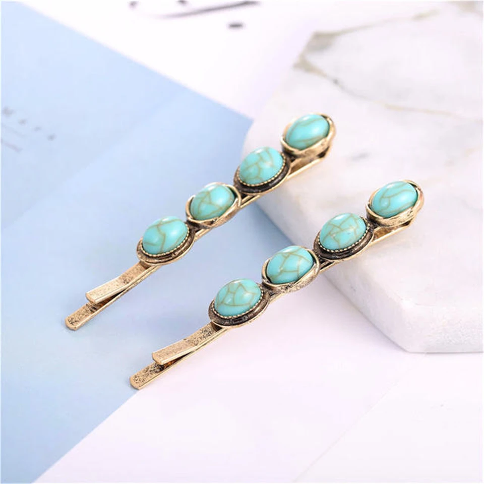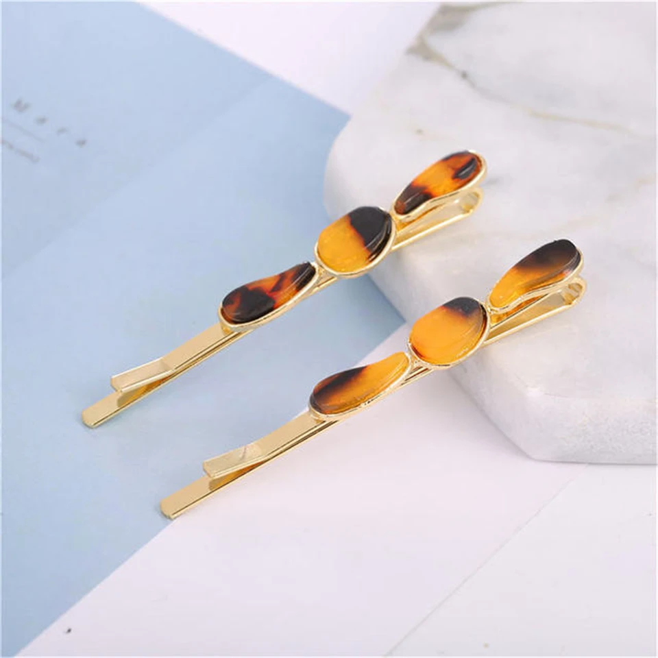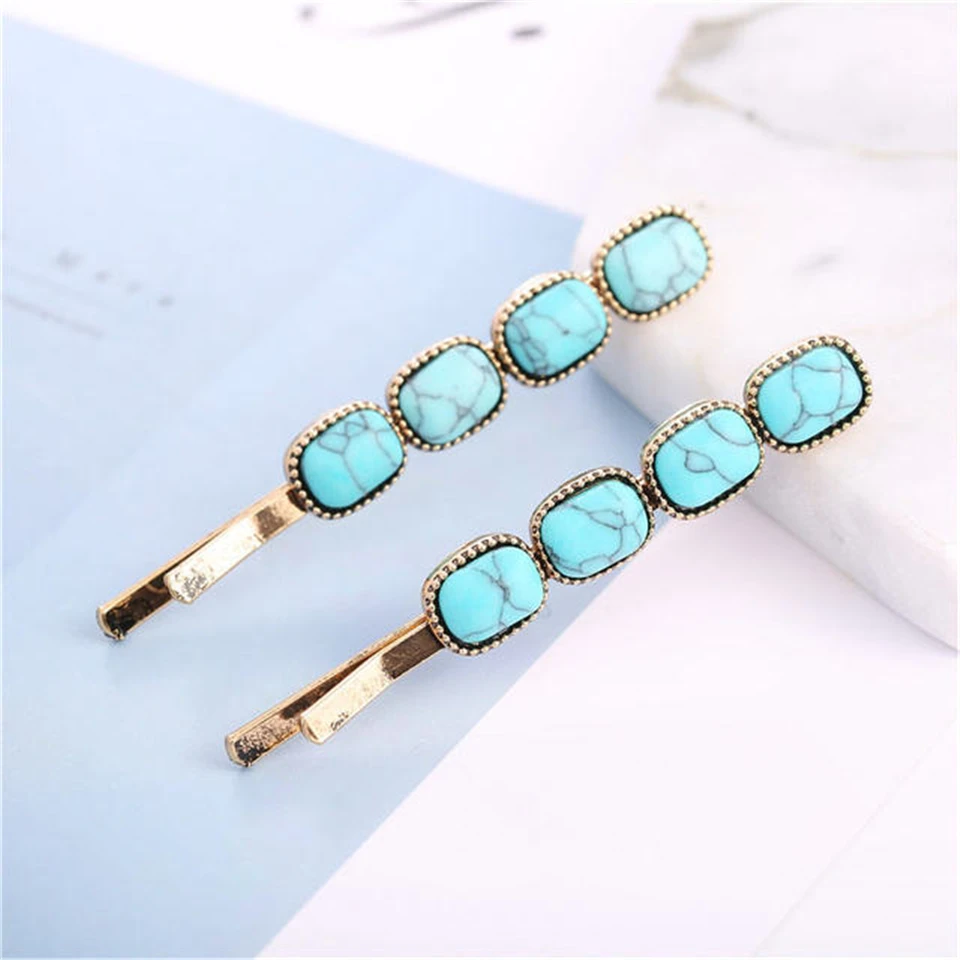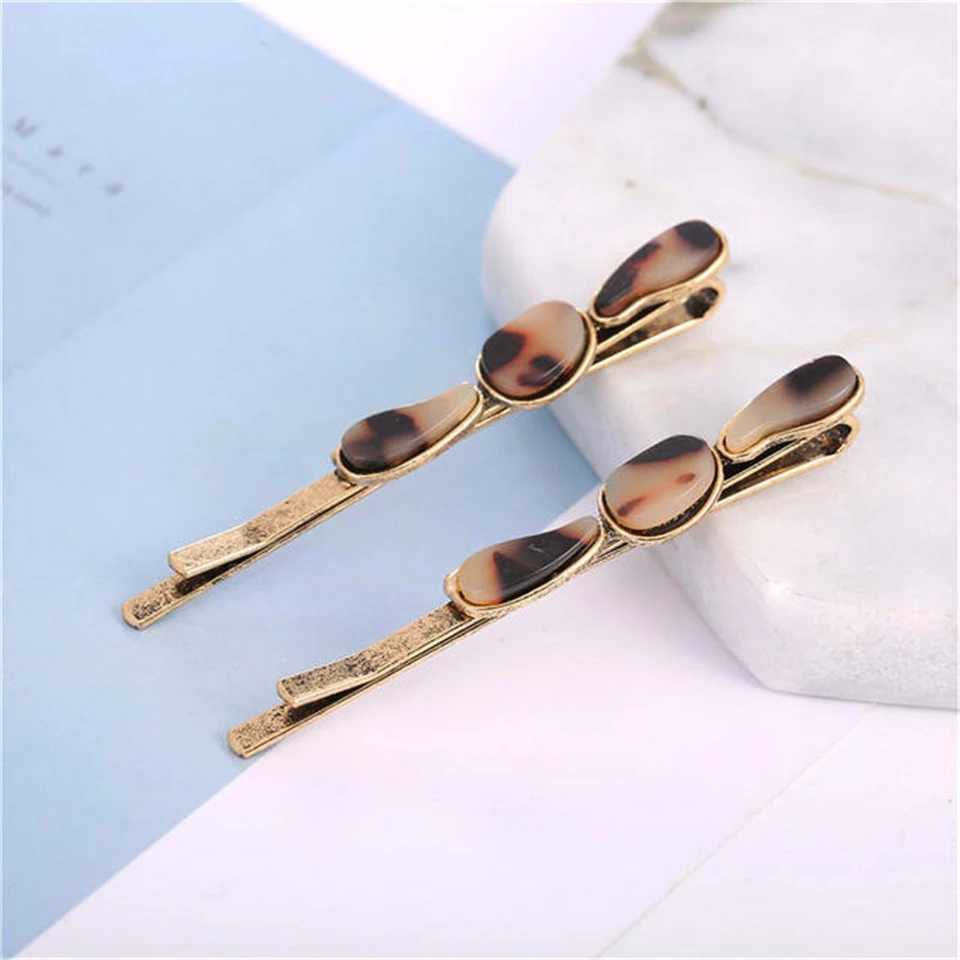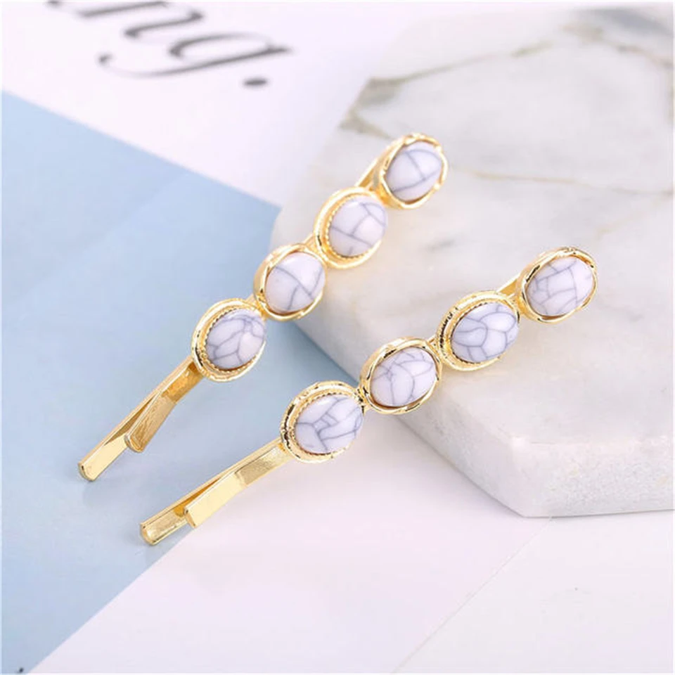 Женские Геометрические заколки для волос, золотистые металлические заколки для волос из натурального камня, винтажные аксессуары для волос, 2 шт.компл.